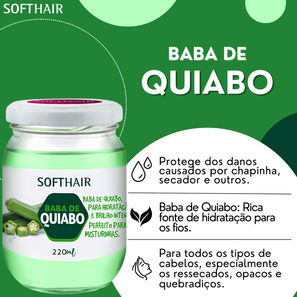 Kit Sumo De Babosa + Baba Quiabo Soft Hair Polpa Pura Natural Hidratação Capilar Vegano 220ml