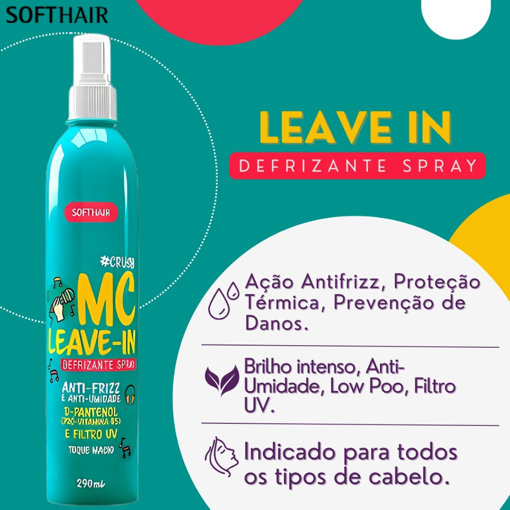 Defrizante Spray Mc Leave In Anti Frizz E Umidade D-Pantenol Filtro Uv Soft Hair 290ml