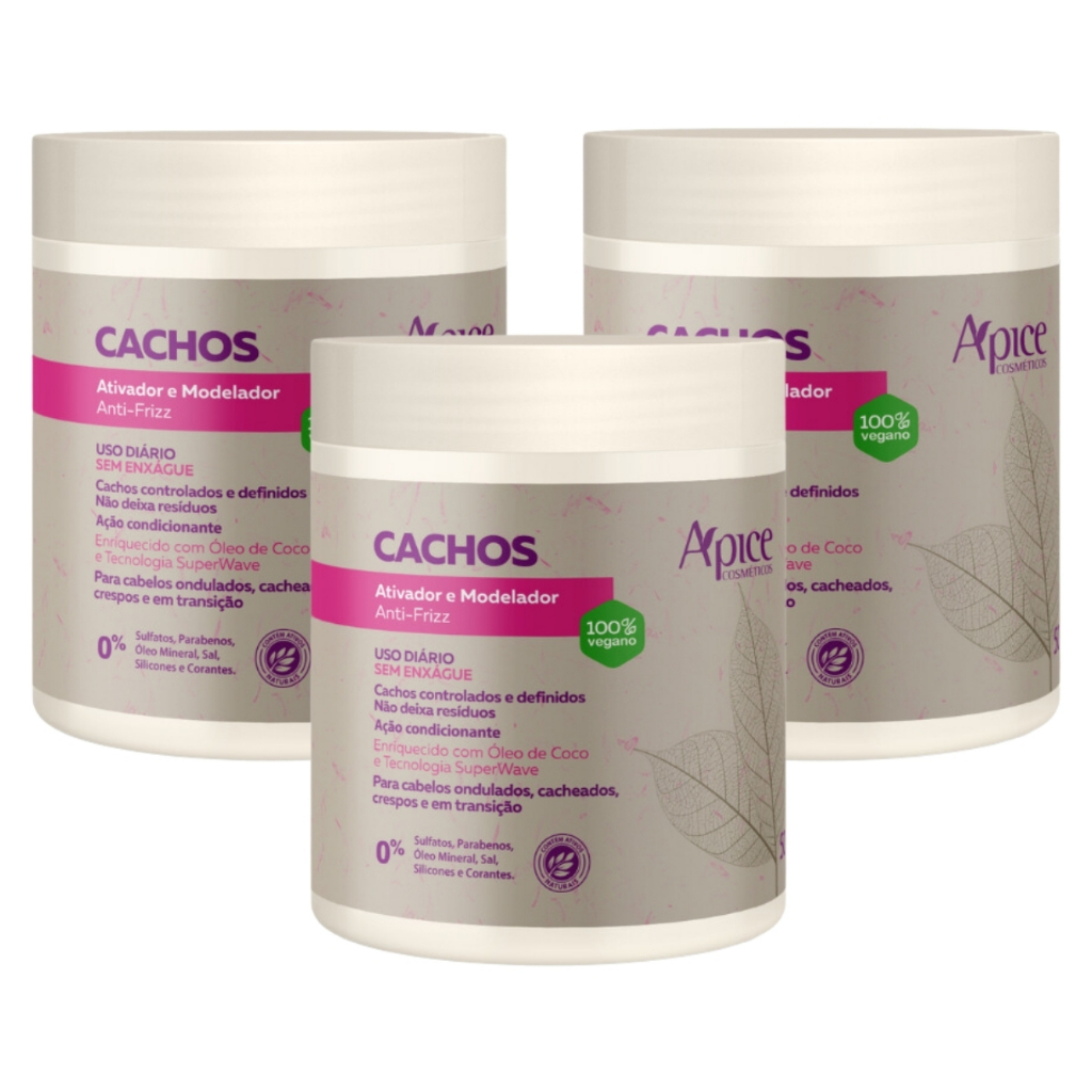 Kit 3 Ativador E Modelador De Cachos Apse Vegano Anti Frizz Creme De Pentar Uso Diario 1.5kg