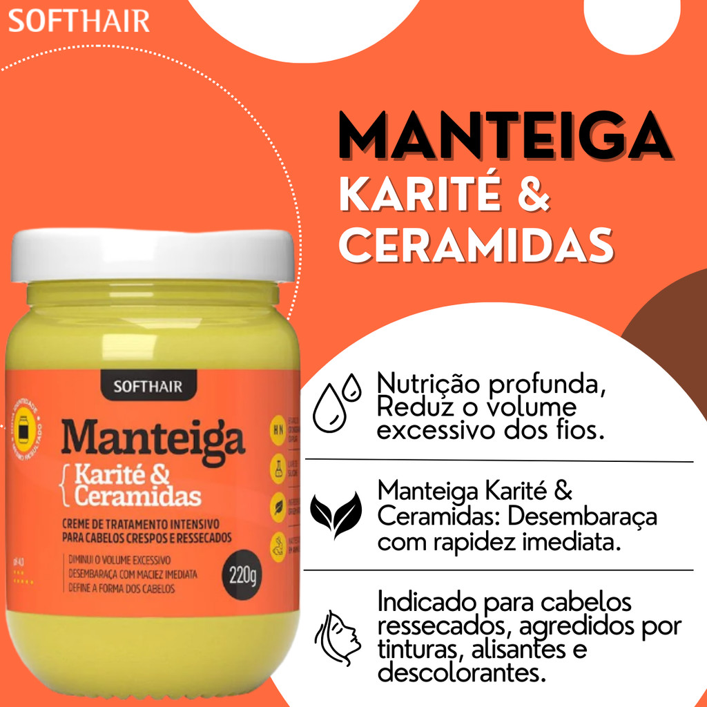 Kit Cronograma Capilar Manteiga Soft Hair Completo Mascara Karite + Murumuru + Argan 220g