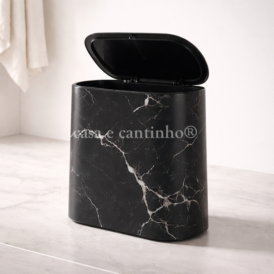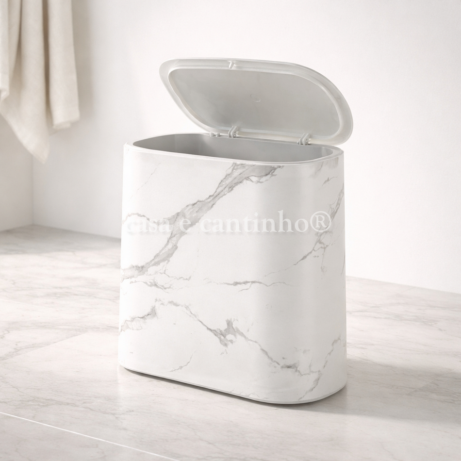 Lixeira De Plástico 9/8 Litros Branca Com Pés De Bambu Tampa Click De Pressão Cozinha Banheiro