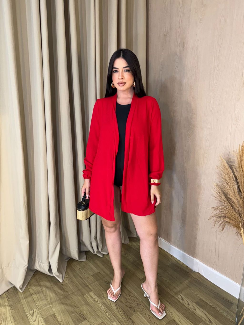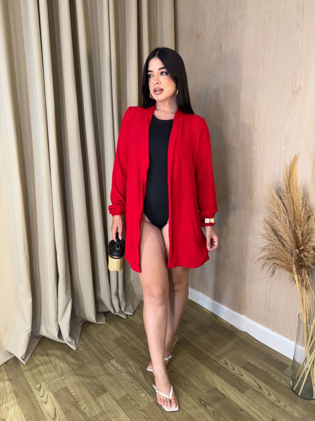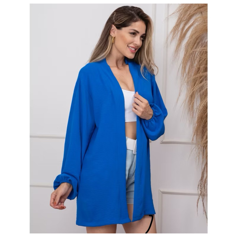 Kimono Saída de Praia FemininA ELEGANTE Curto Camisa Manga Longa de Banho Sem Botão Verão