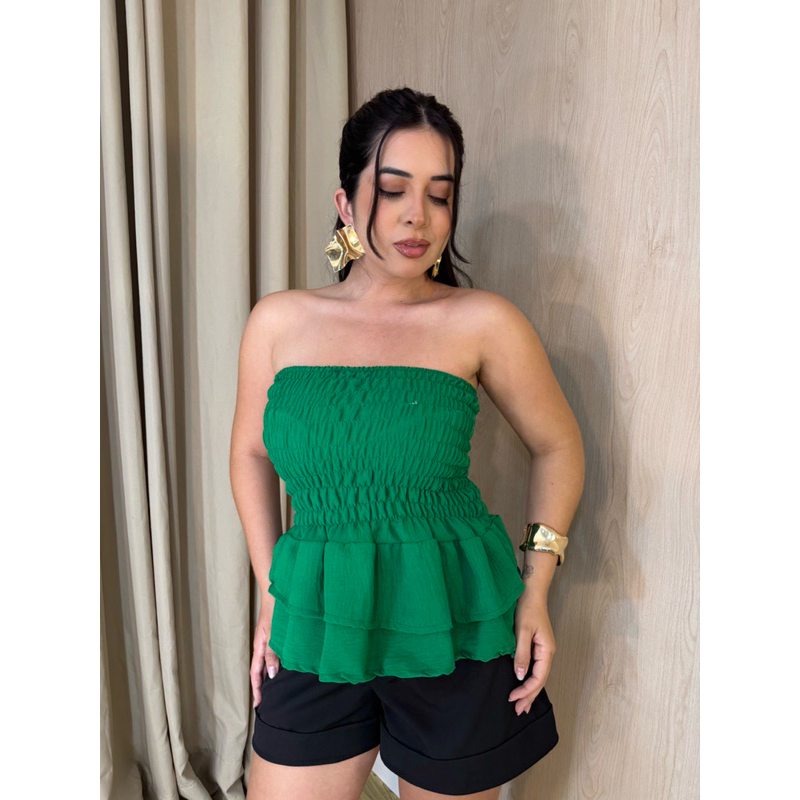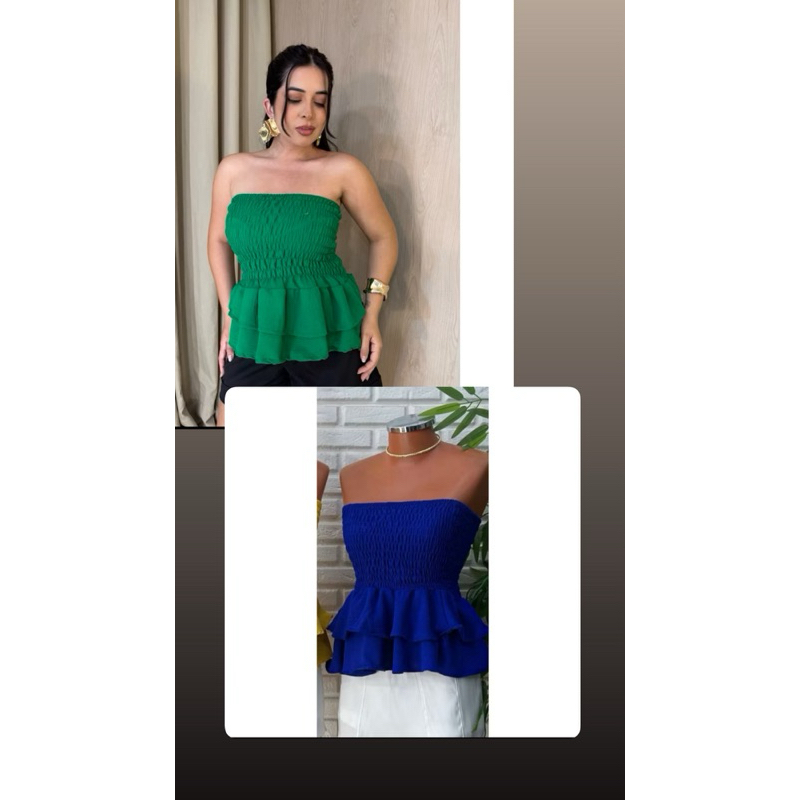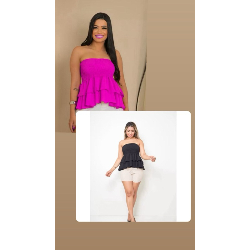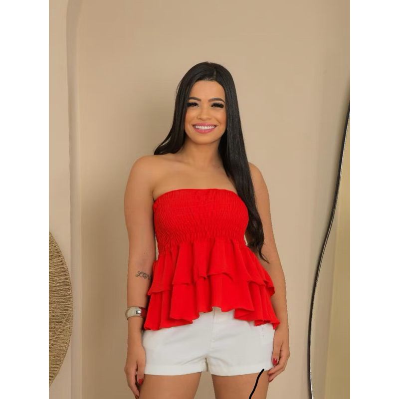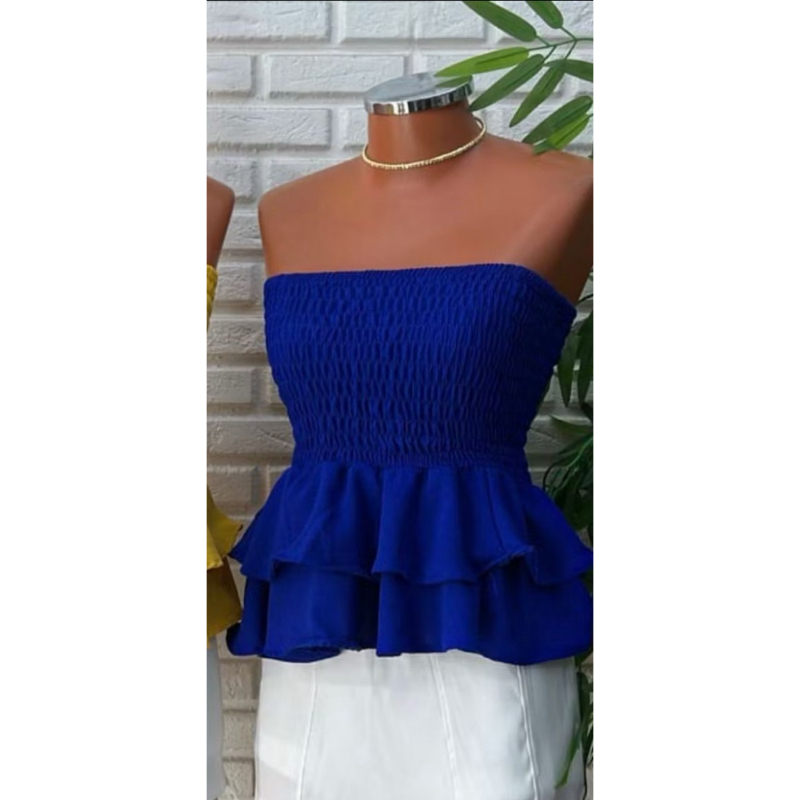 Blusa tomara que caia estilosa elastex com babado no duna qualidade premium acabamento perfeito verão ELEGANTE