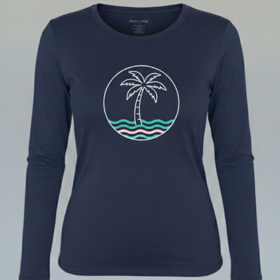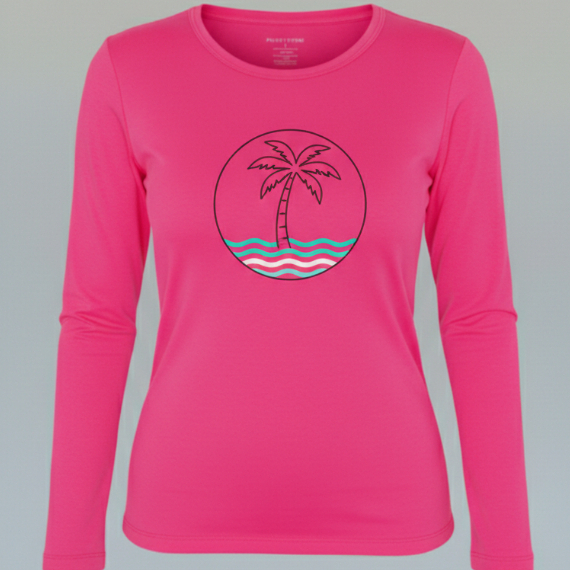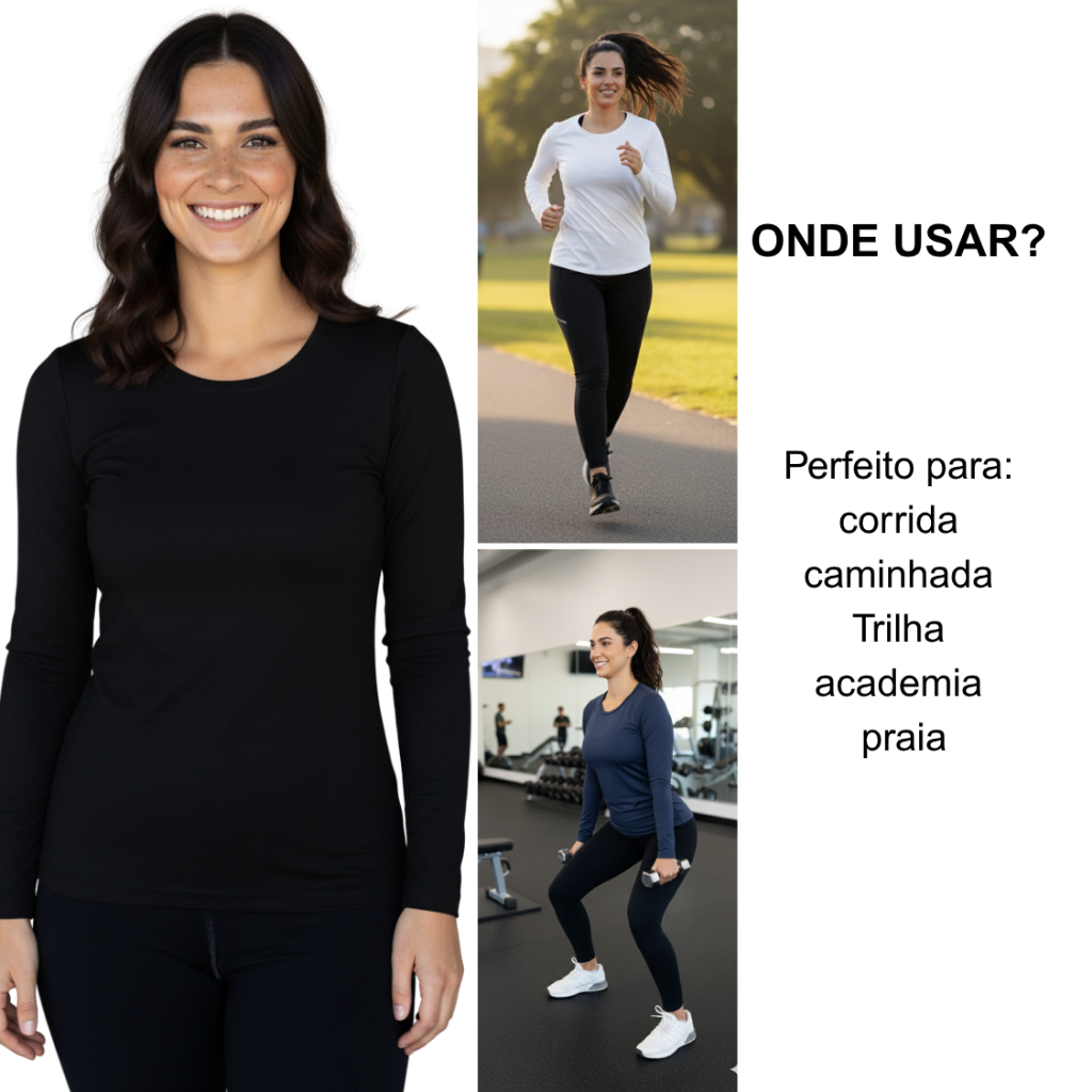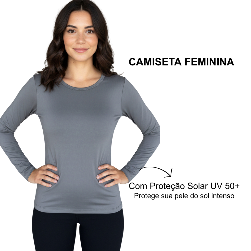 Camiseta Feminina Térmica Manga Longa Estampa Praia - Proteção Solar Uv 50+ | Corrida Praia Fitnes