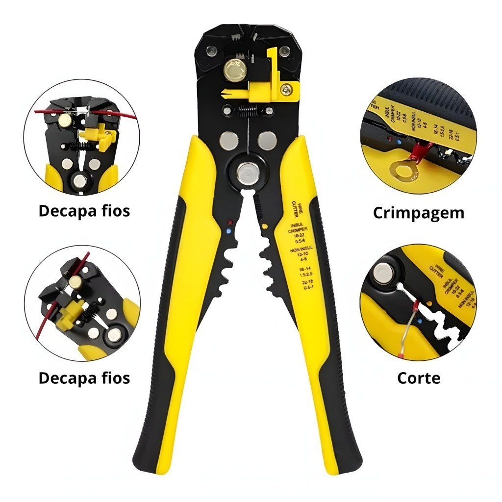 Alicate Crimpar + 1200 Terminais Ilhos + Descascador 0,25 Até 10mm²