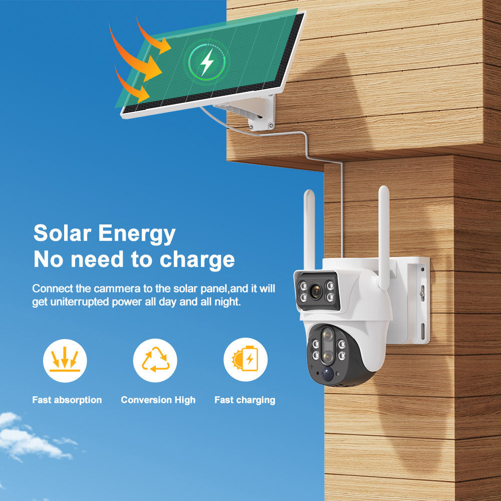 Câmera V380 BP9 DL com Visão Noturna, IP68 à Prova d'Água, Lente Tripla, Detecção PIR, Alimentação Solar e Zoom