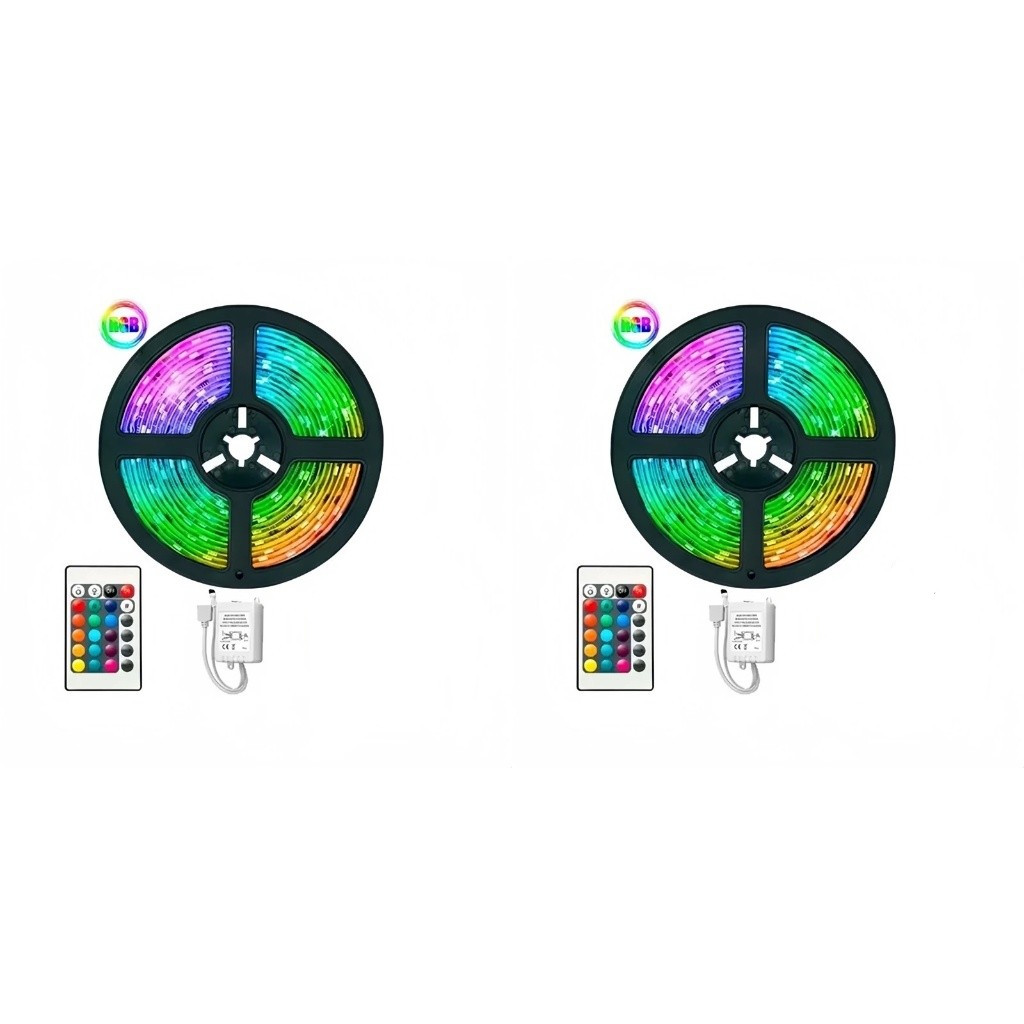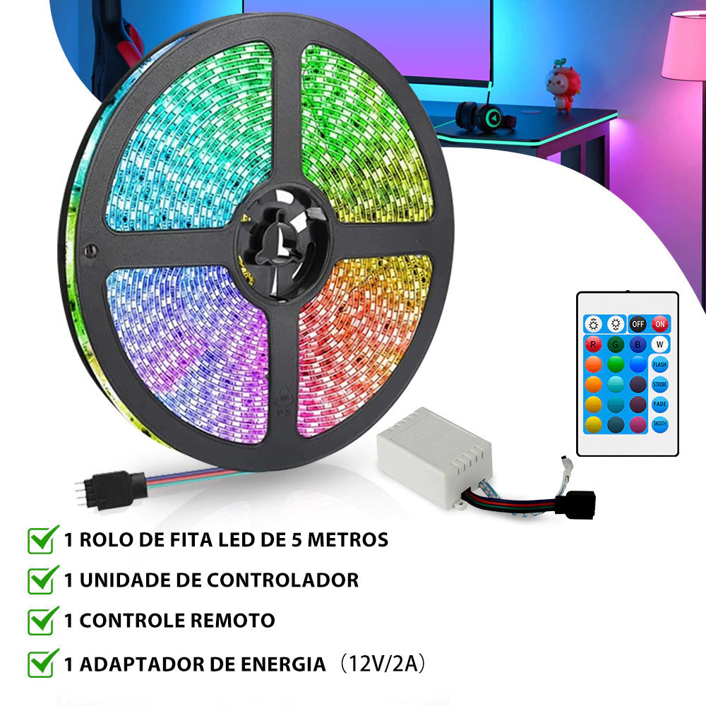 Fita Led Rgb 3528 Colorida 5m + Controle+Fonte 300 Led Decoração Casa Loja Gesso Teto Sanca Vitrine