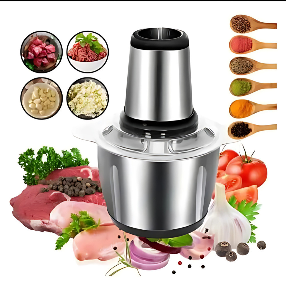 Moedor Triturador Processador Elétrico 2L Alimentos Carnes Legumes Aço Inox Multifuncional 110V/220V PRONTA ENTREGA