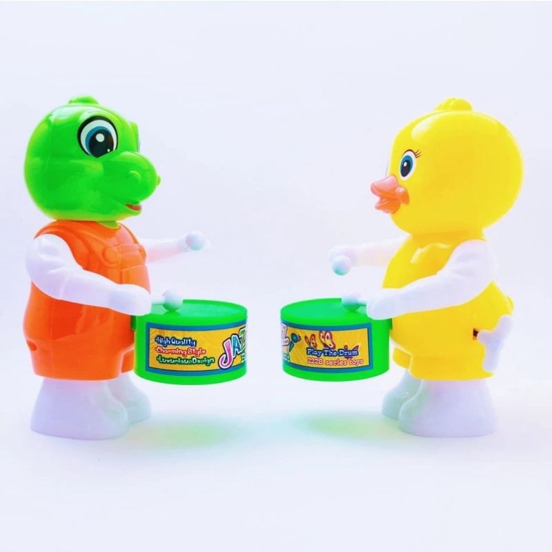 Brinquedo Movido a Corda Infantil Toca Tambor Dinossauros Patinho