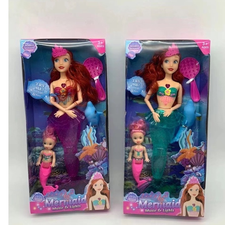 de Brinquedo sereia princesa com boneca pequena e luz e som boneca presente de natal