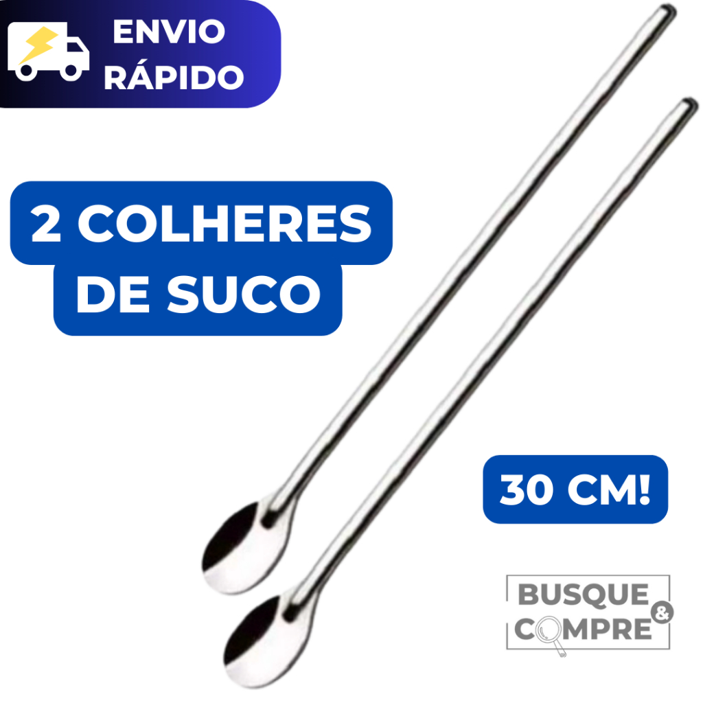 2 Colheres Grandes de 30cm Colher para Sucos Drinks Milkshakes Bebidas Aço Inox para Cozinha Suco