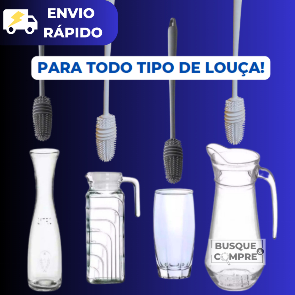 Escova para Louças Garrafas Copos Mamadeiras Lavar Esfregar Escovar Plástico Limpeza Cozinha