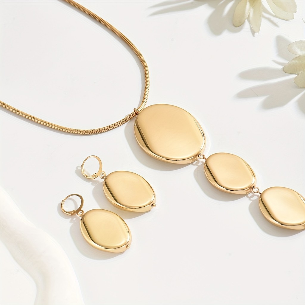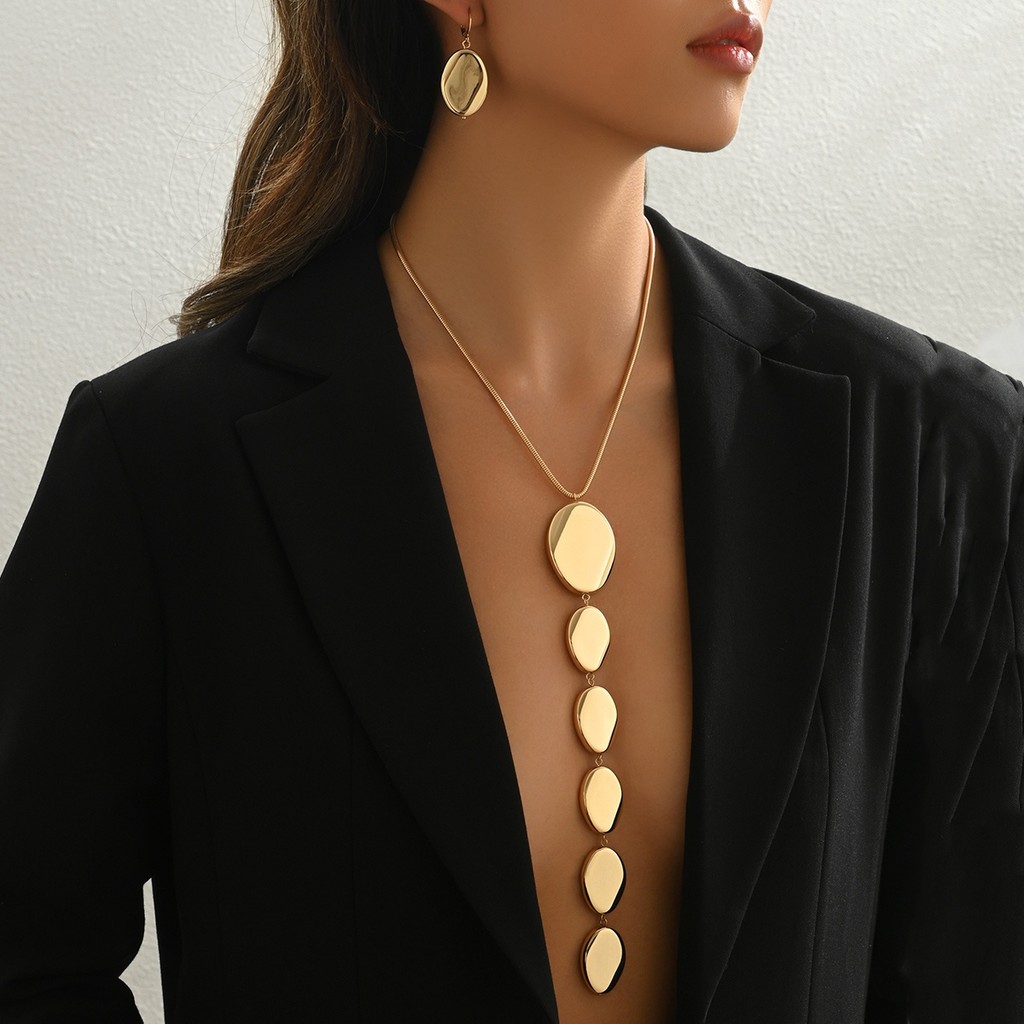 Conjunto De Brincos E Colar Minimalistas Da Moda , 2 Peças , Com Pingente Geométrico Irregular Longo Em Forma De Y , Joi