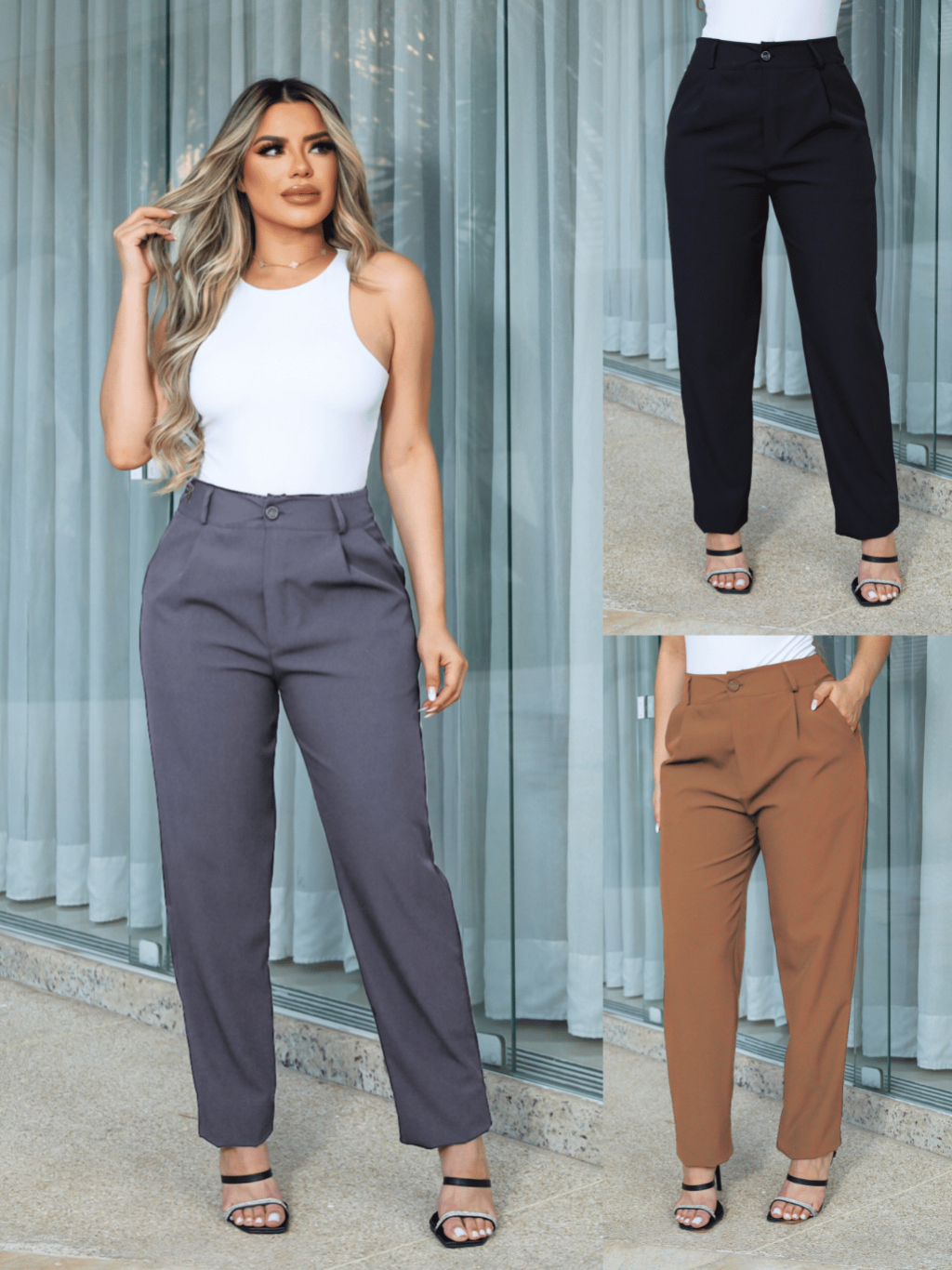 ZAVA Calça Alfaiataria Reta com Prega Textura Bolsos Laterais