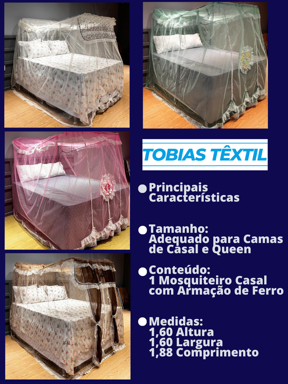 Mosquiteiro Completo com Armação Casal Box e Queen