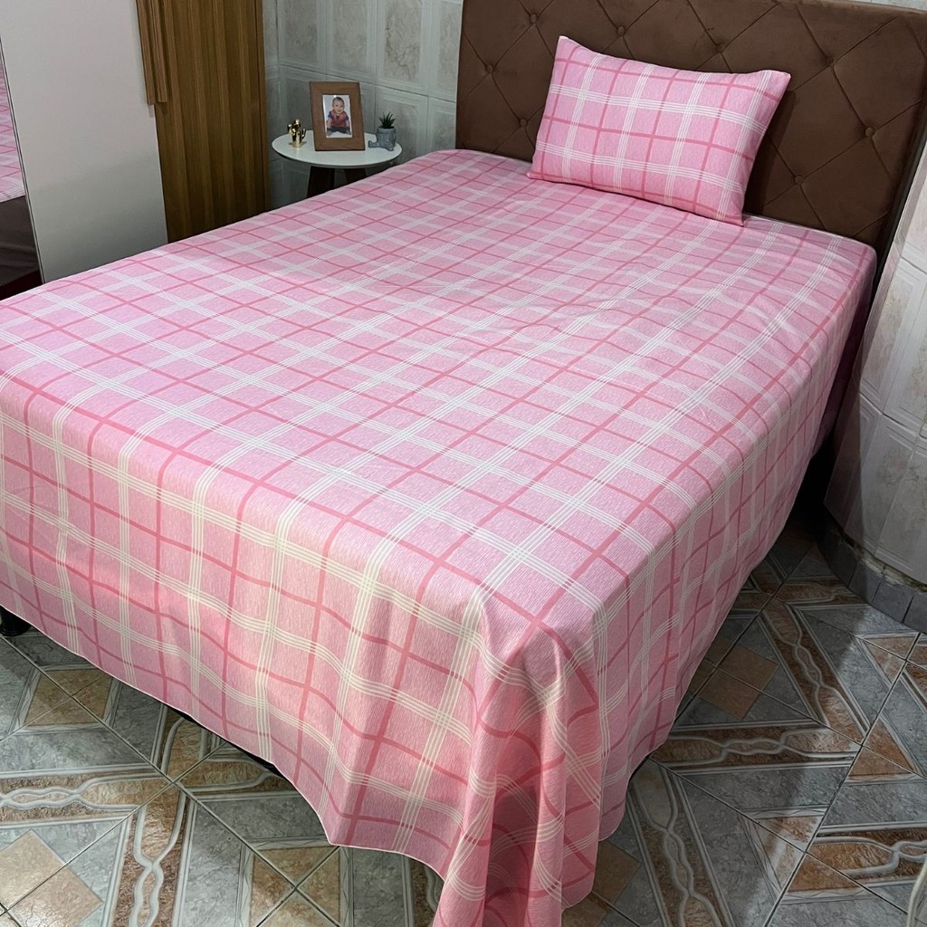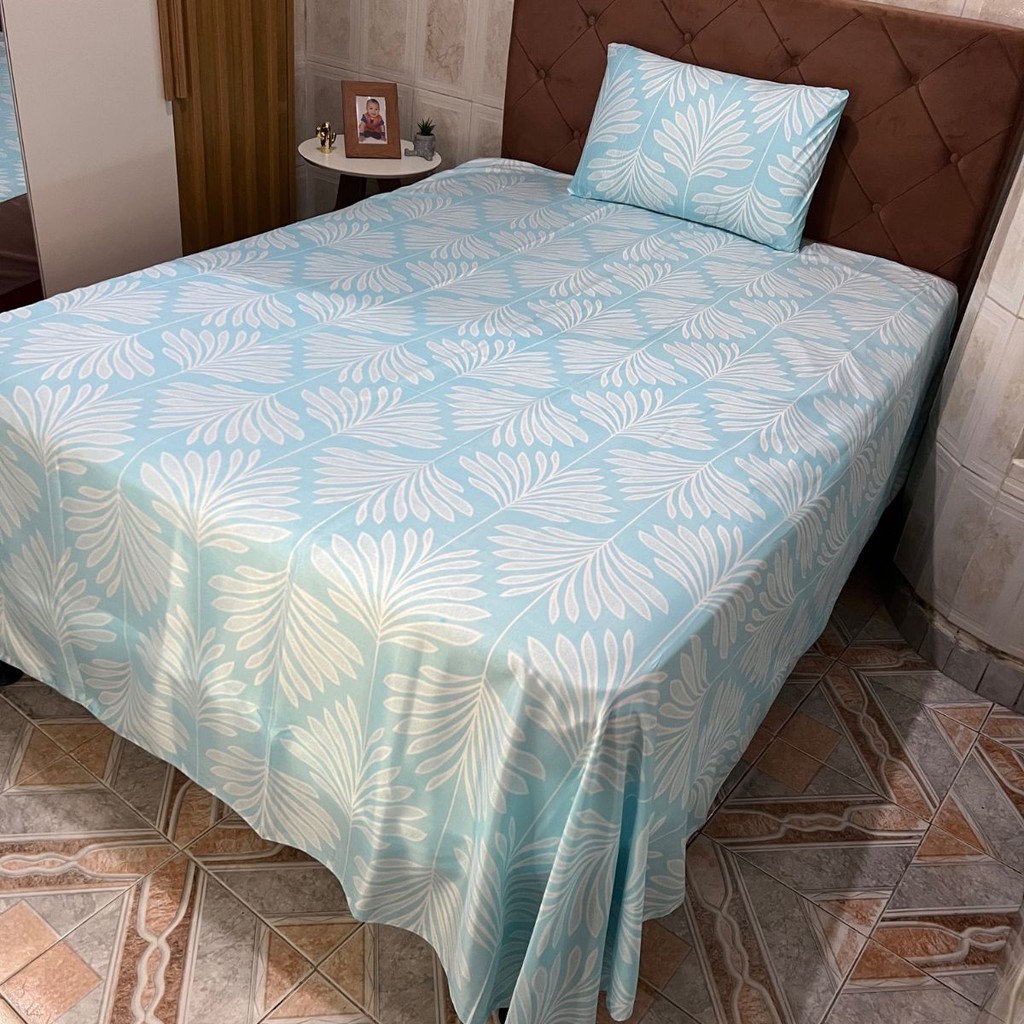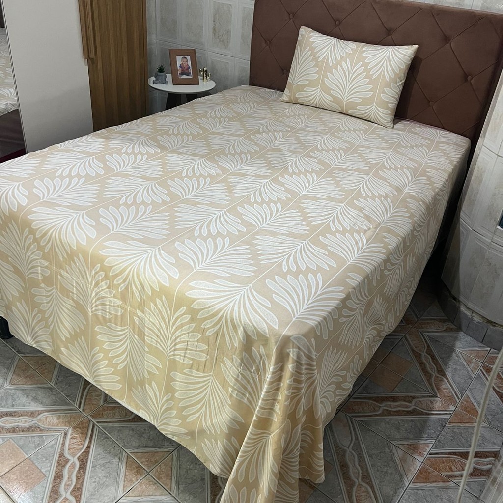 Kit Lençol Para Cama Solteiro 2 Peças Com Fronha Microfibra Sem Elástico Estampado