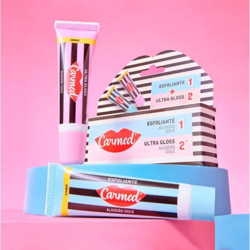 Carmed SOS Hidratante Labial Algodão Doce Esfoliante 10g + Ultra Gloss 10g