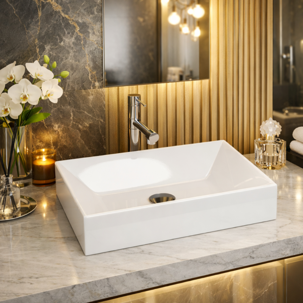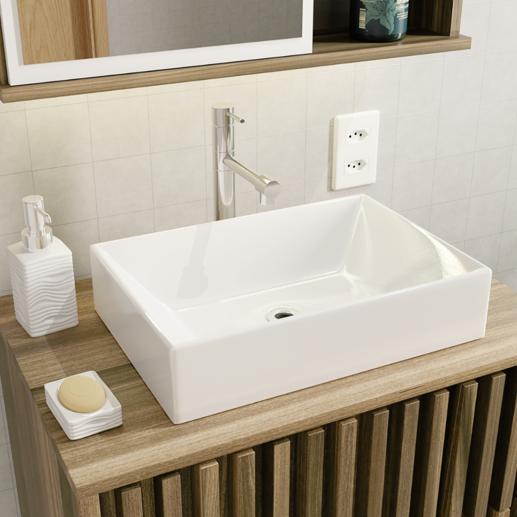 Cuba Sobrepor Pia de Sobrepor Banheiro 39x27cm Cuba de Apoio Para Bancada Torino Mármore sintético