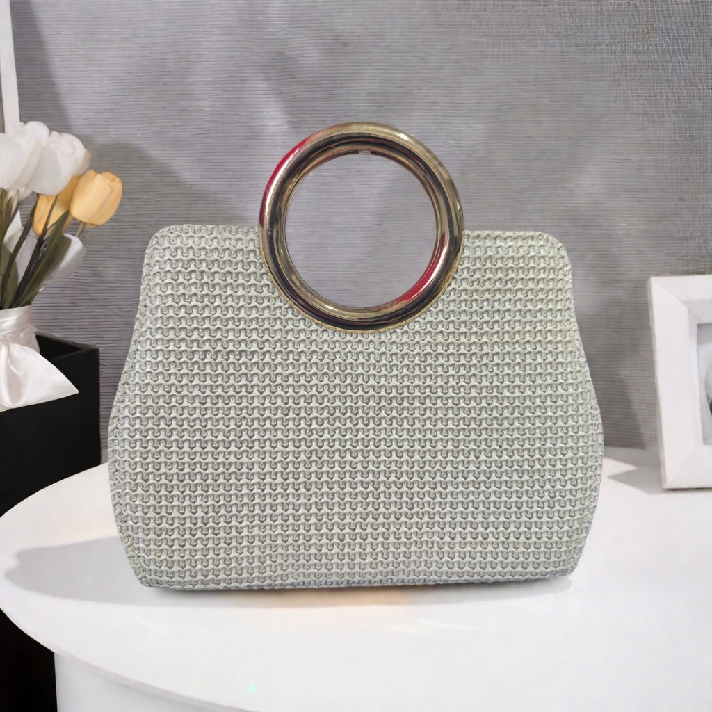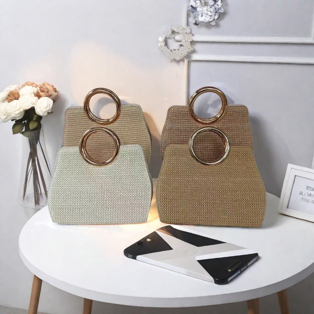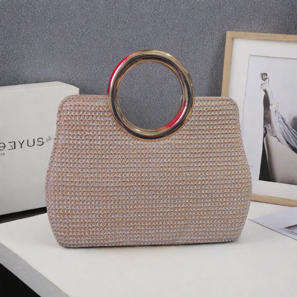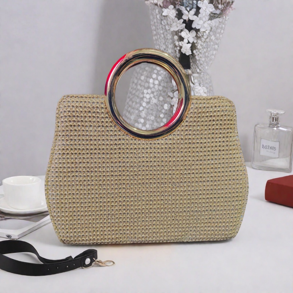 Bolsa Tote De Praia Feminina De Palha Tecida Crossbody Com Fecho De Corrente