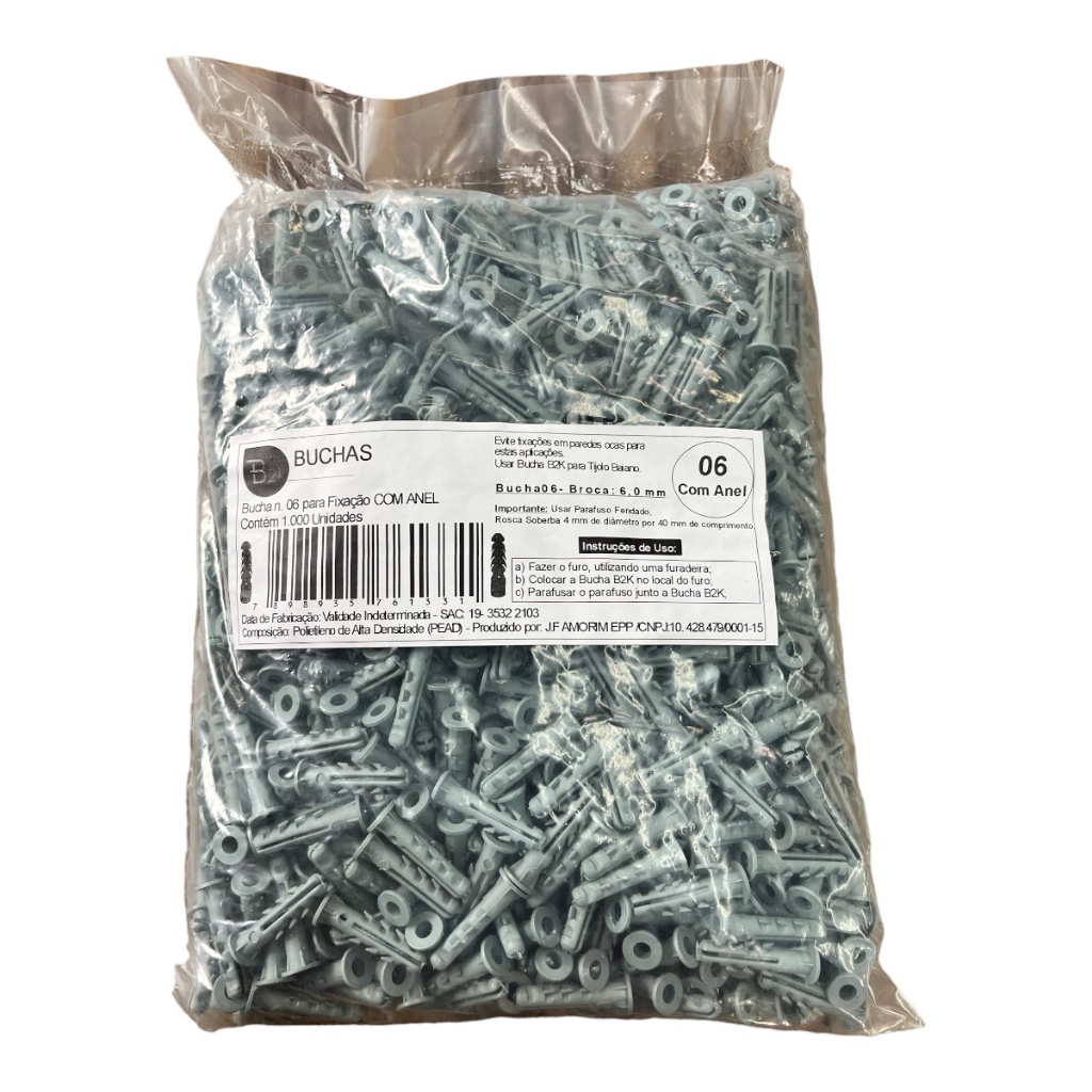 Bucha 6 mm Com Aba de Polietileno (PEAD) Bucha Plástica N 6 Tradicional UB Com Anel