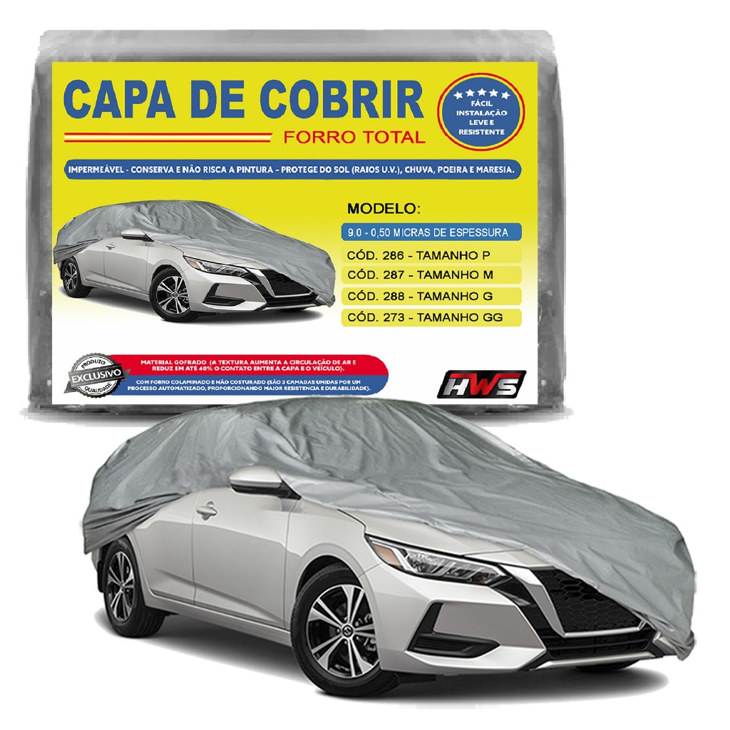 Capa Cobrir Carro Hatch Sedan Cinza HWS 100% Forrada Impermeável Proteção Sol e Chuva P M G