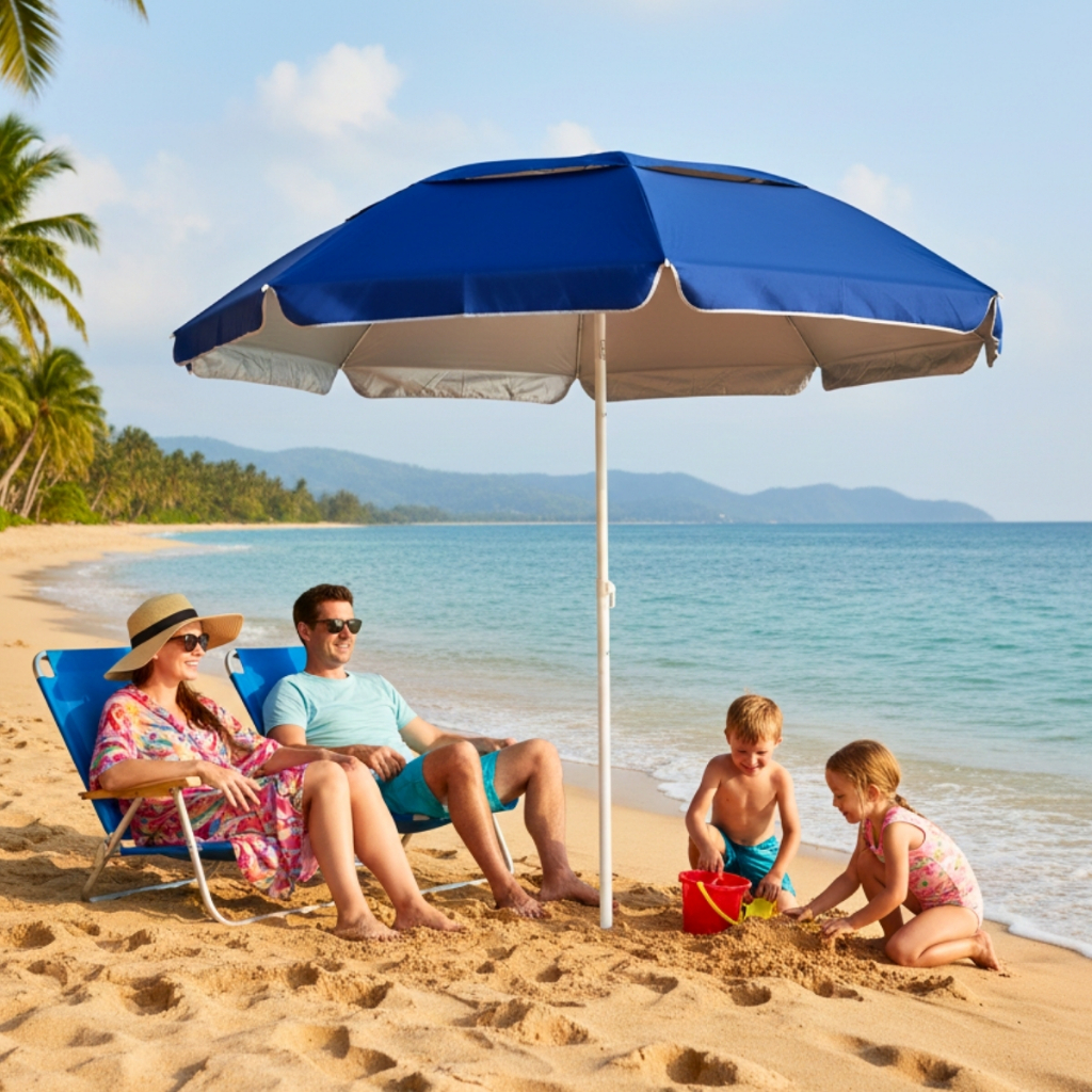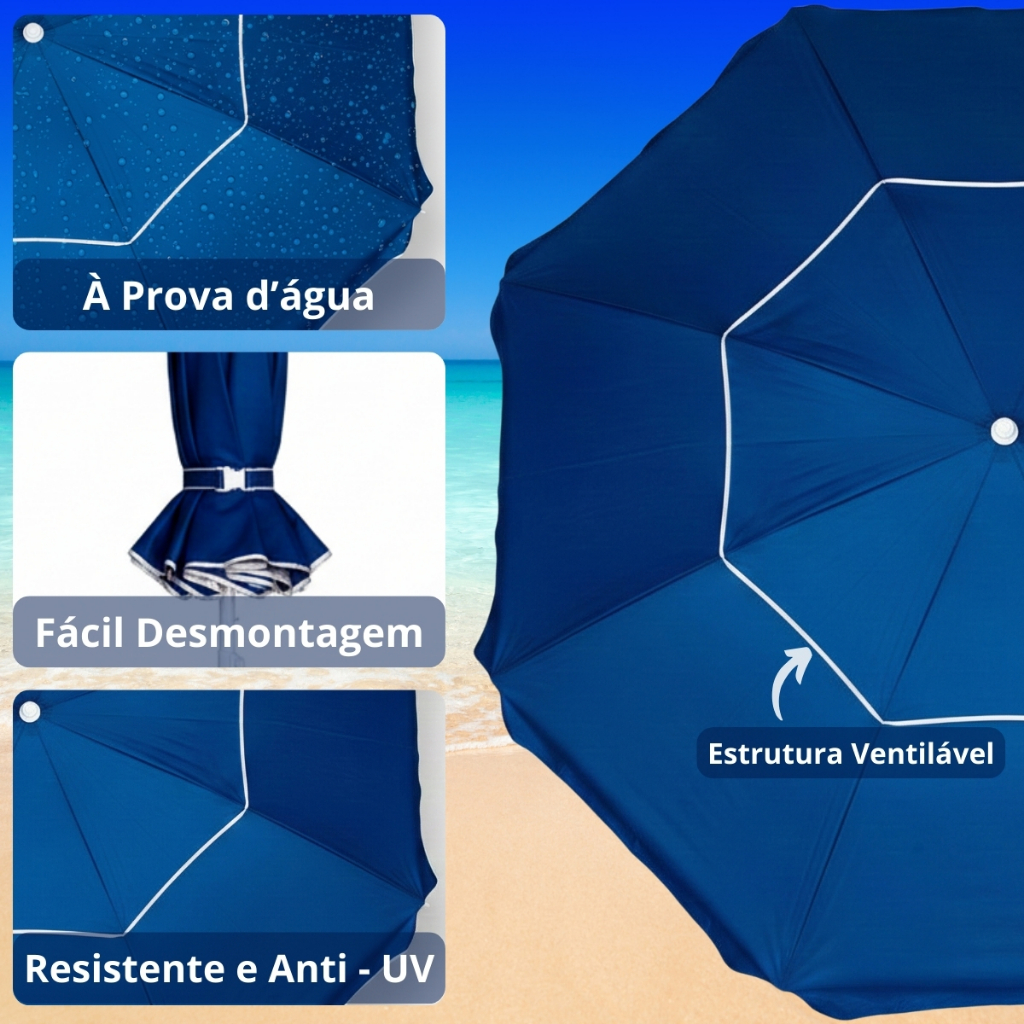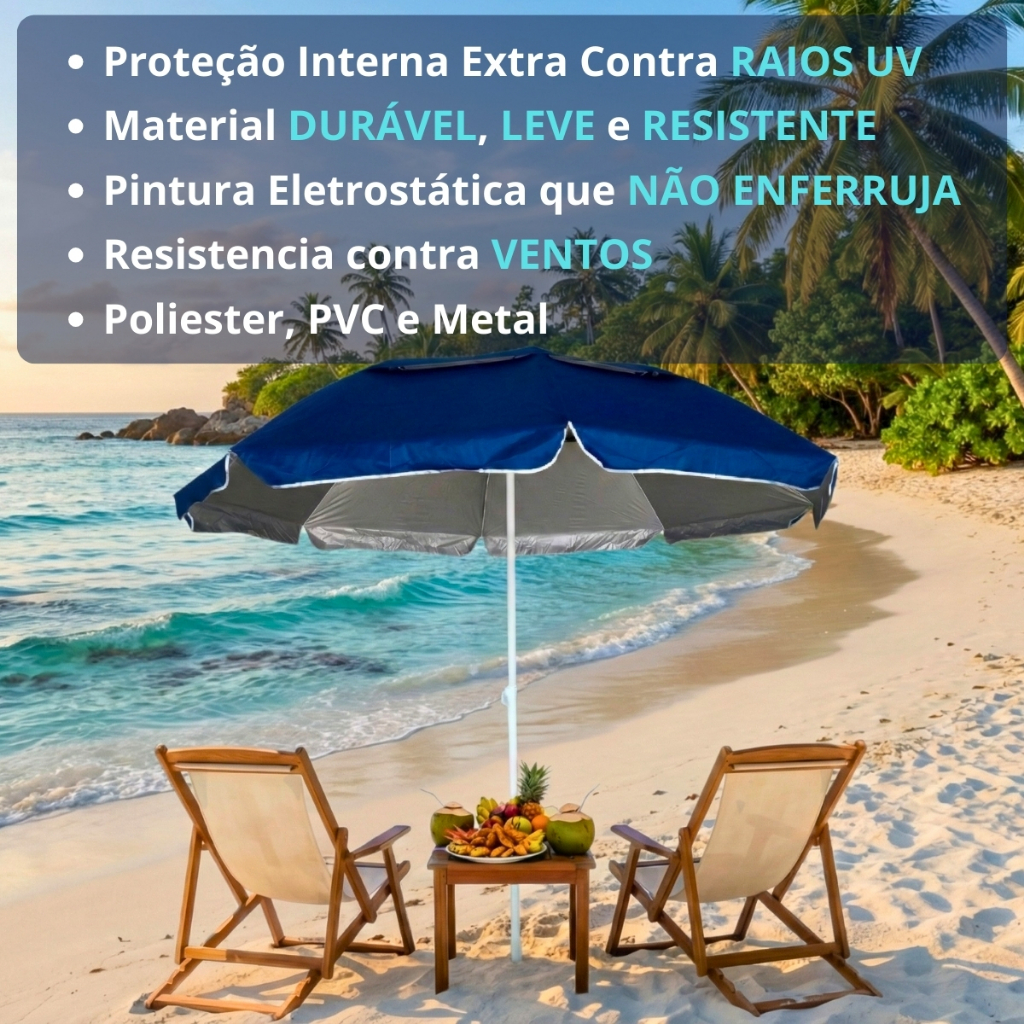 Guarda Sol Ombrelone Grande 2,40 Metros Com Proteção UV Resistente Impermeável Haste De Metal Sol Praia Piscina Verão