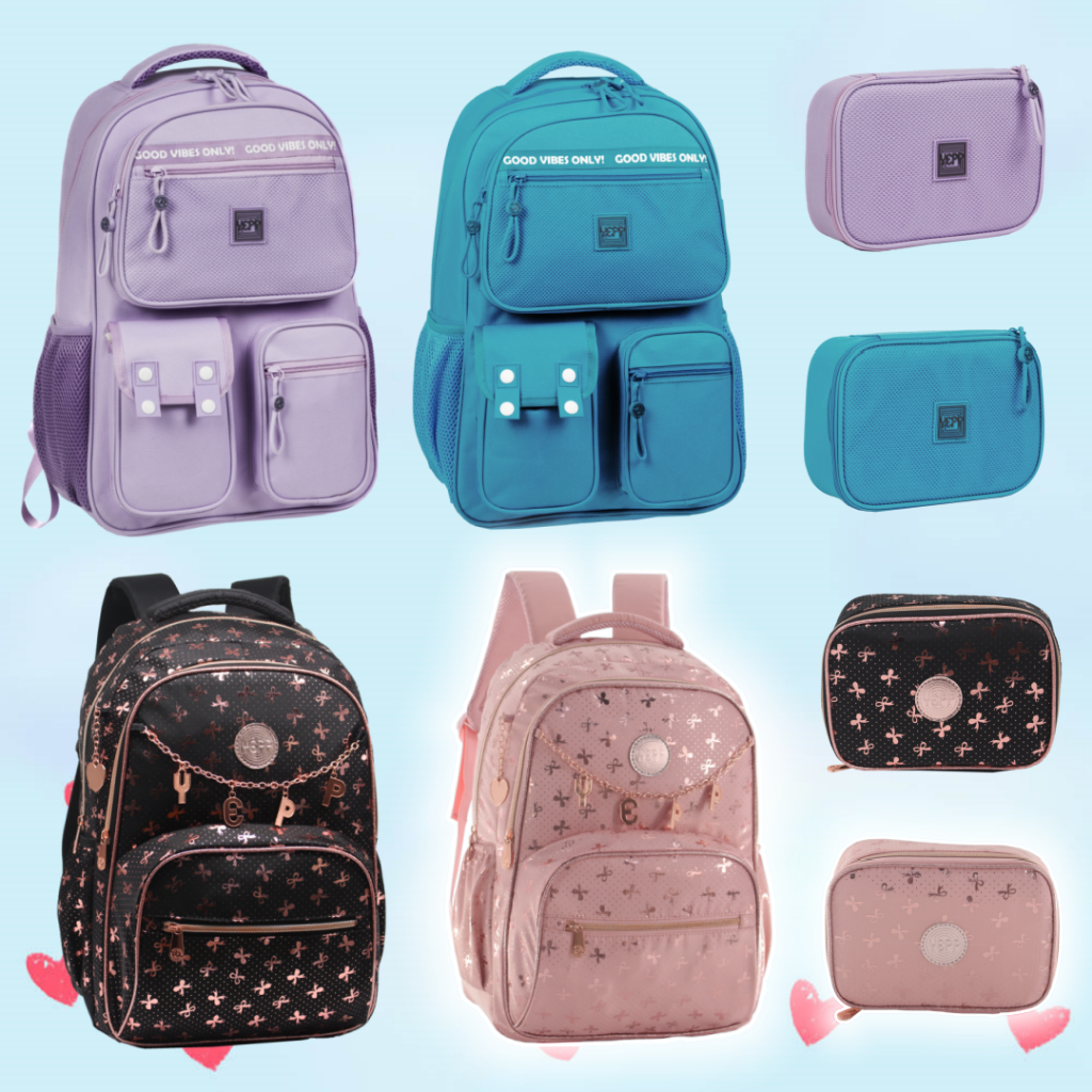 2026 Nova Mochila Escolar Juvenil Feminina / Estojo Box - [MF8210/8222]