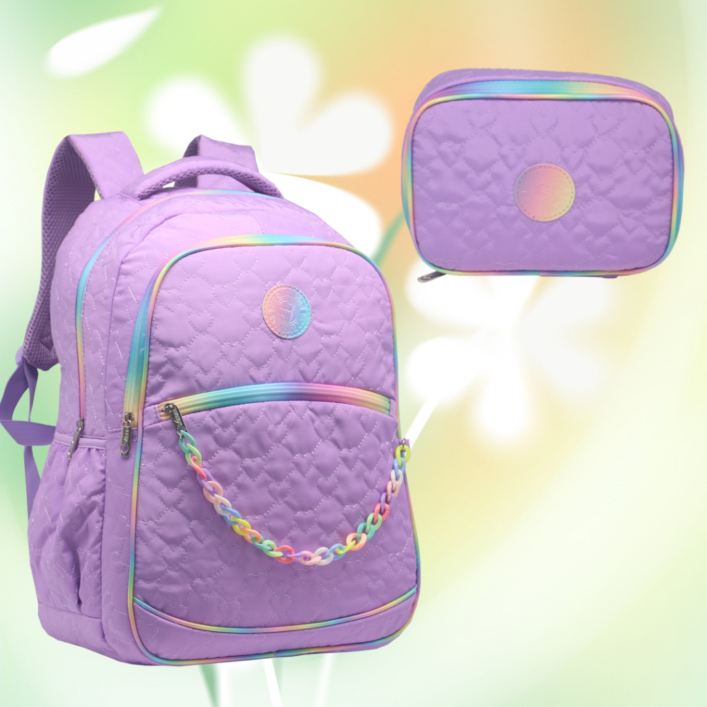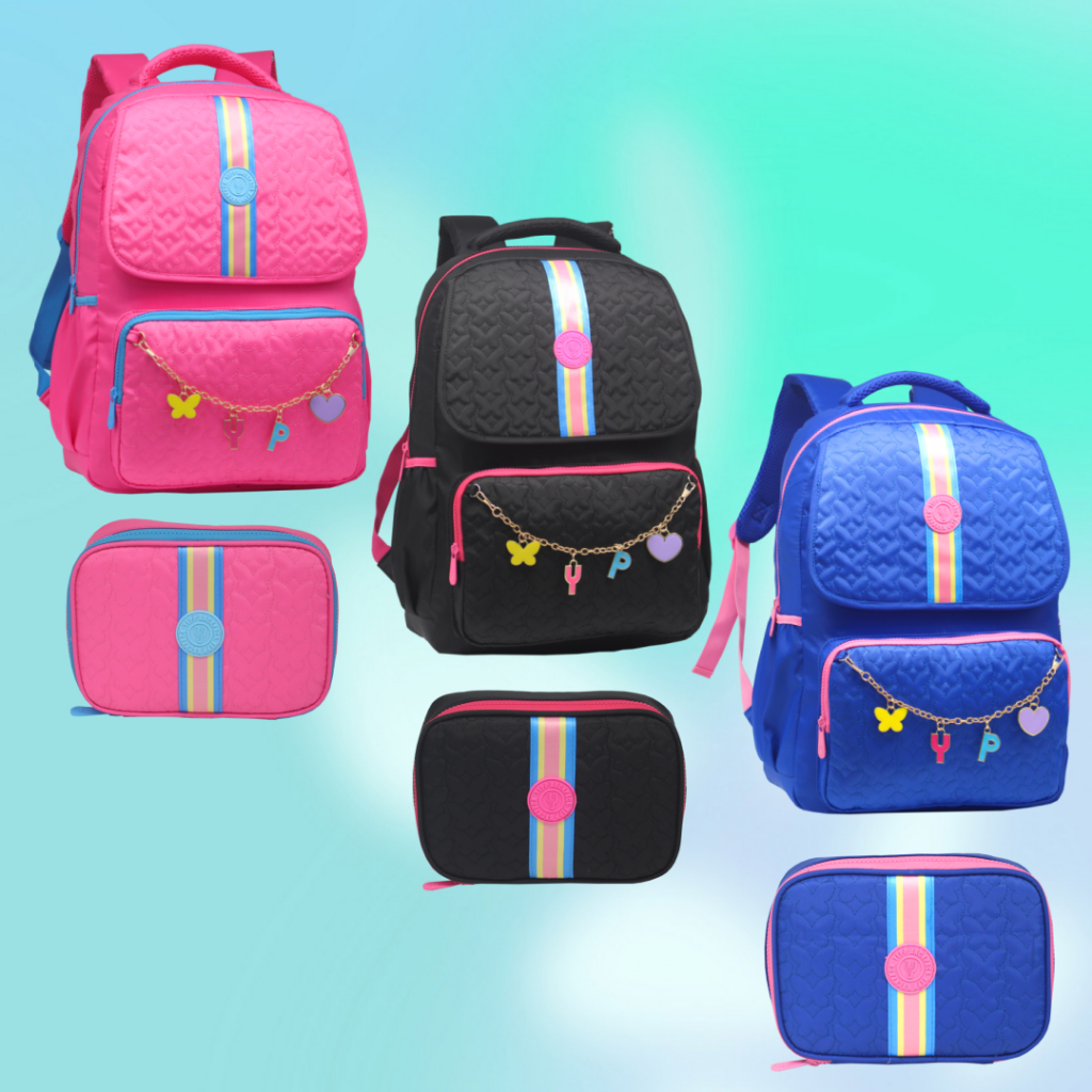 2026 Nova Mochila Escolar Juvenil Feminina Espessada / Estojo Box - [MF8205/8208/8197/8198]
