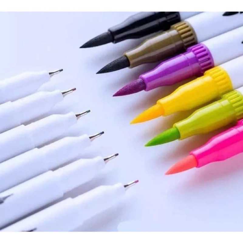 Kit Com 12/24/36Cores caneta 2em 1 com ponta dupla pincel estilo brushpen e ponta fina