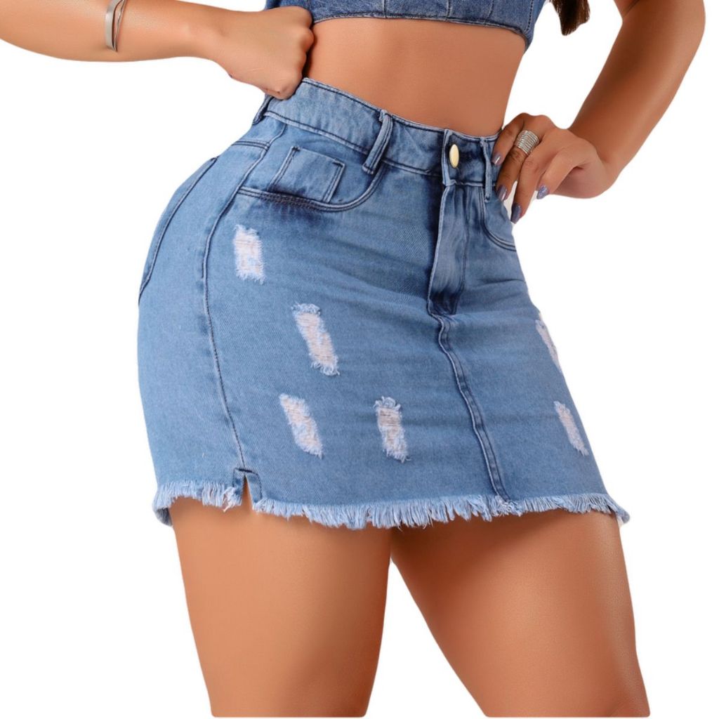 Saia Jeans Curta Desfiada Cintura Alta - Vários Modelos