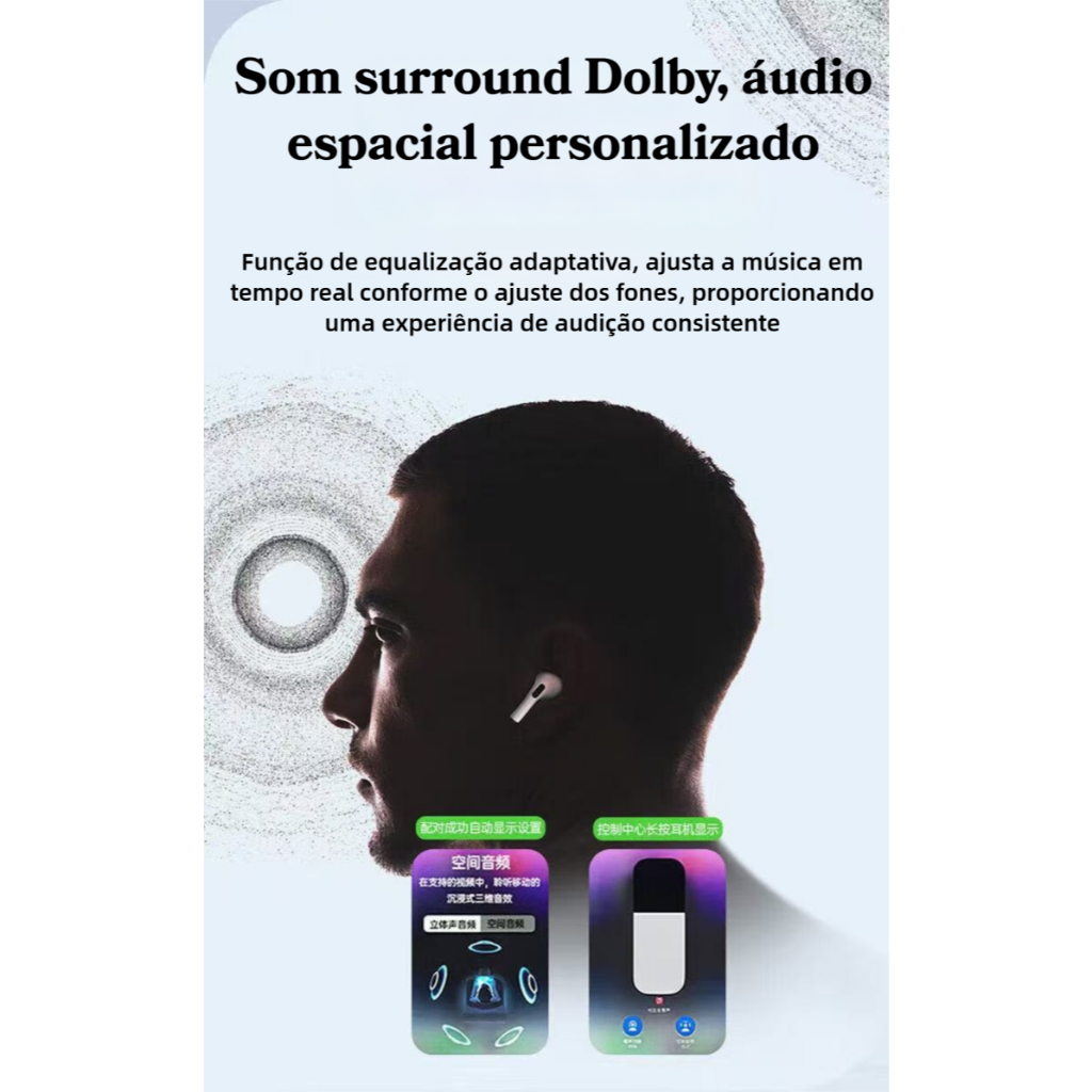 Fone Bluetooth Pro5 Premium | Imersão Total c Cancelamento Ruído Qualidade Superior p iPhoneAndroid