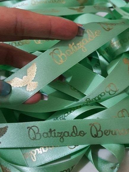 08 Metros de fita de cetim | Personalizada | Impressões Prata, Dourado e preto
