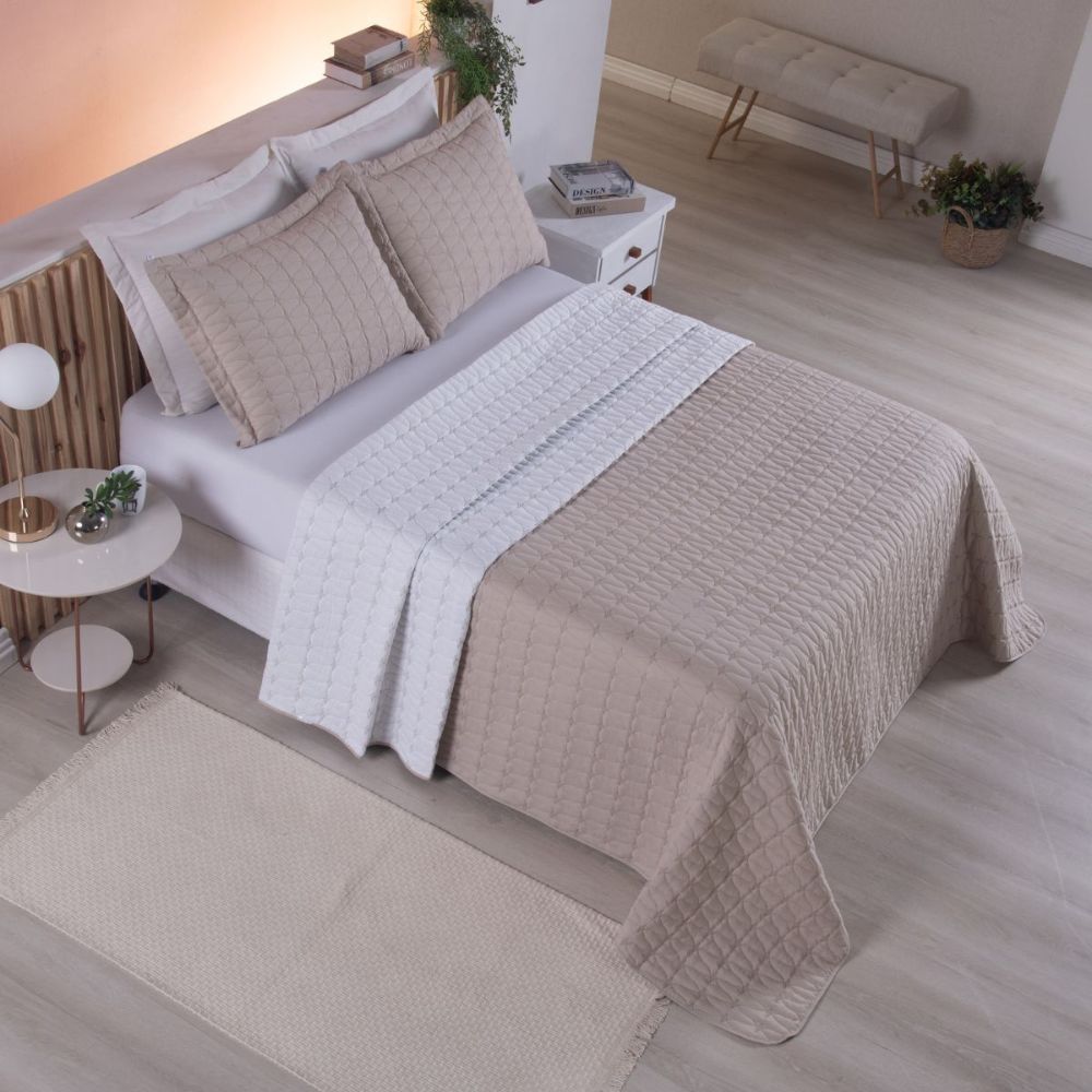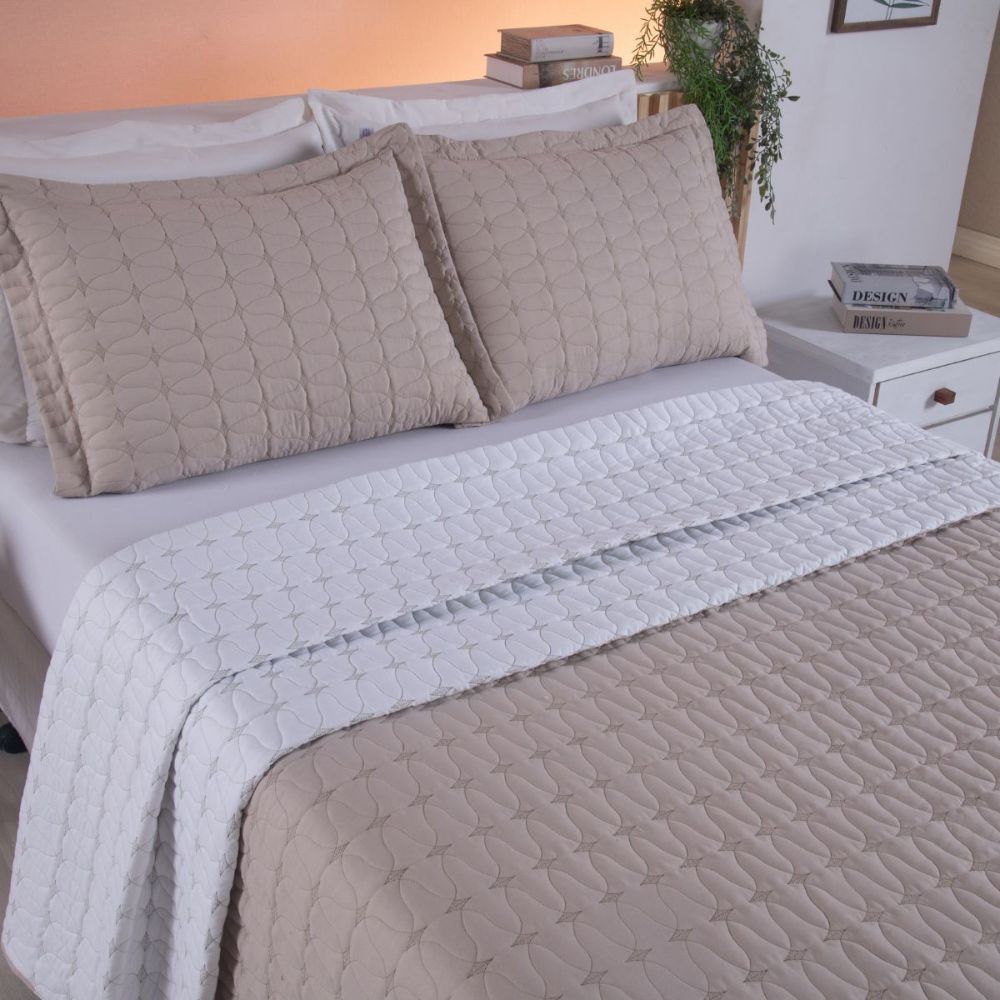 Kit Colcha Cobre Leito Queen Dupla Face 3 Peças Porta Travesseiro Unique Completo