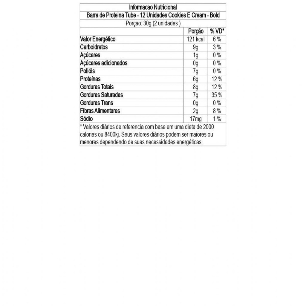 Barra de Proteina Tube - 12 Unidades Cookies E Cream - Bold