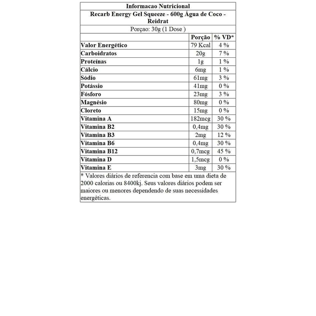 Recarb Energy Gel Squeeze - 600g Água de Coco - Reidrat