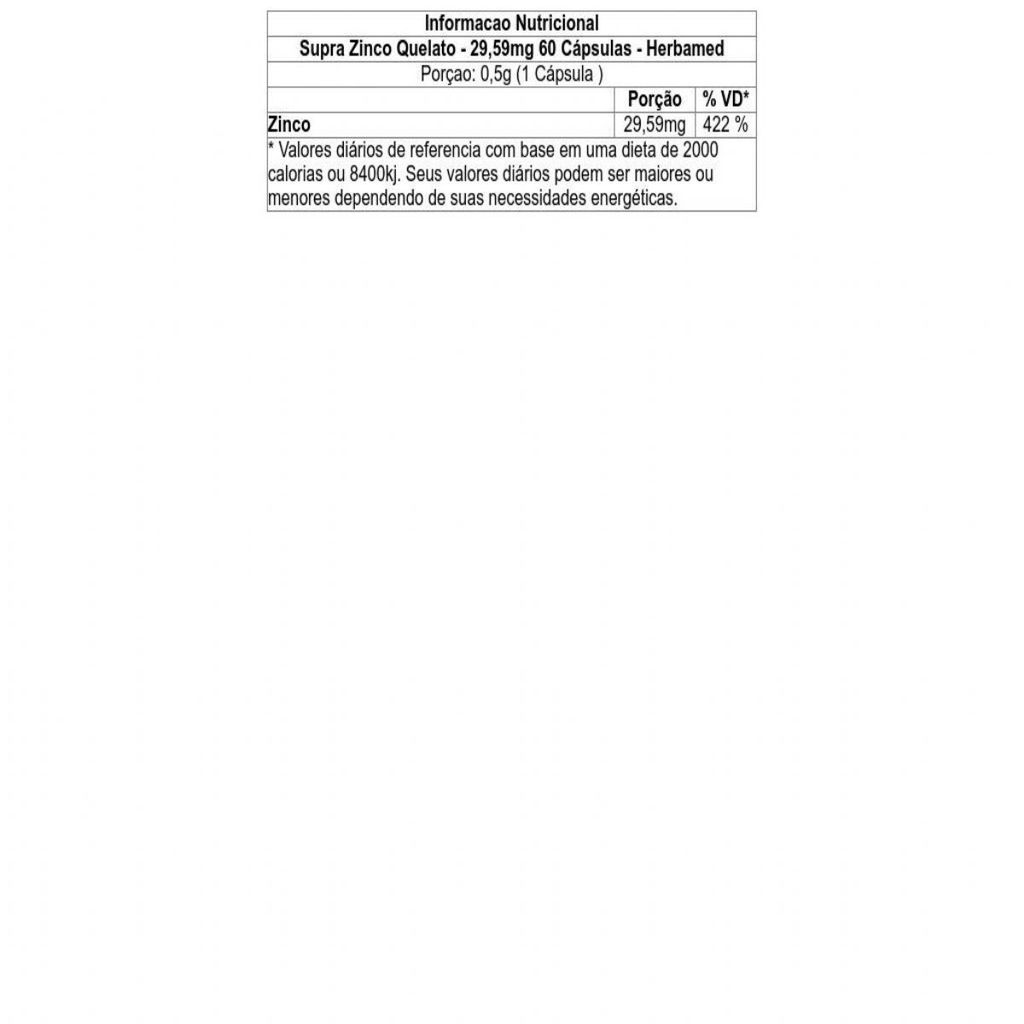 Supra Zinco Quelato - 29,59mg 60 Cápsulas - Herbamed