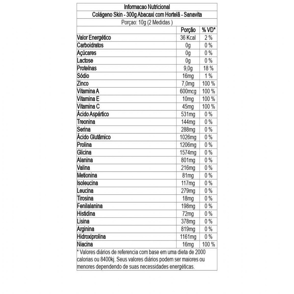 Colágeno Skin - 300g Abacaxi com Hortelã - Sanavita