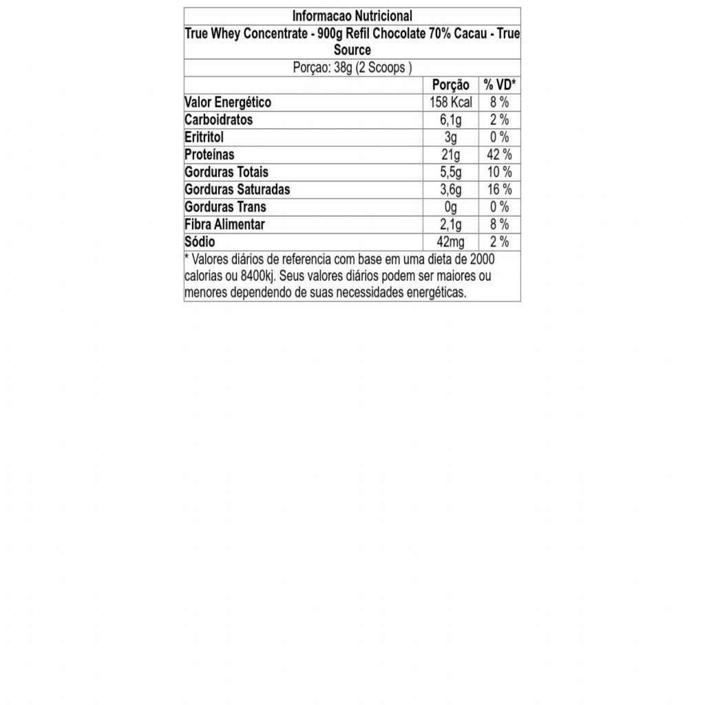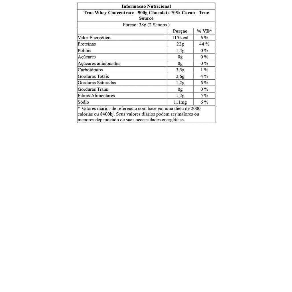 True Whey Concentrate - 900g Chocolate 70% Cacau - True Source