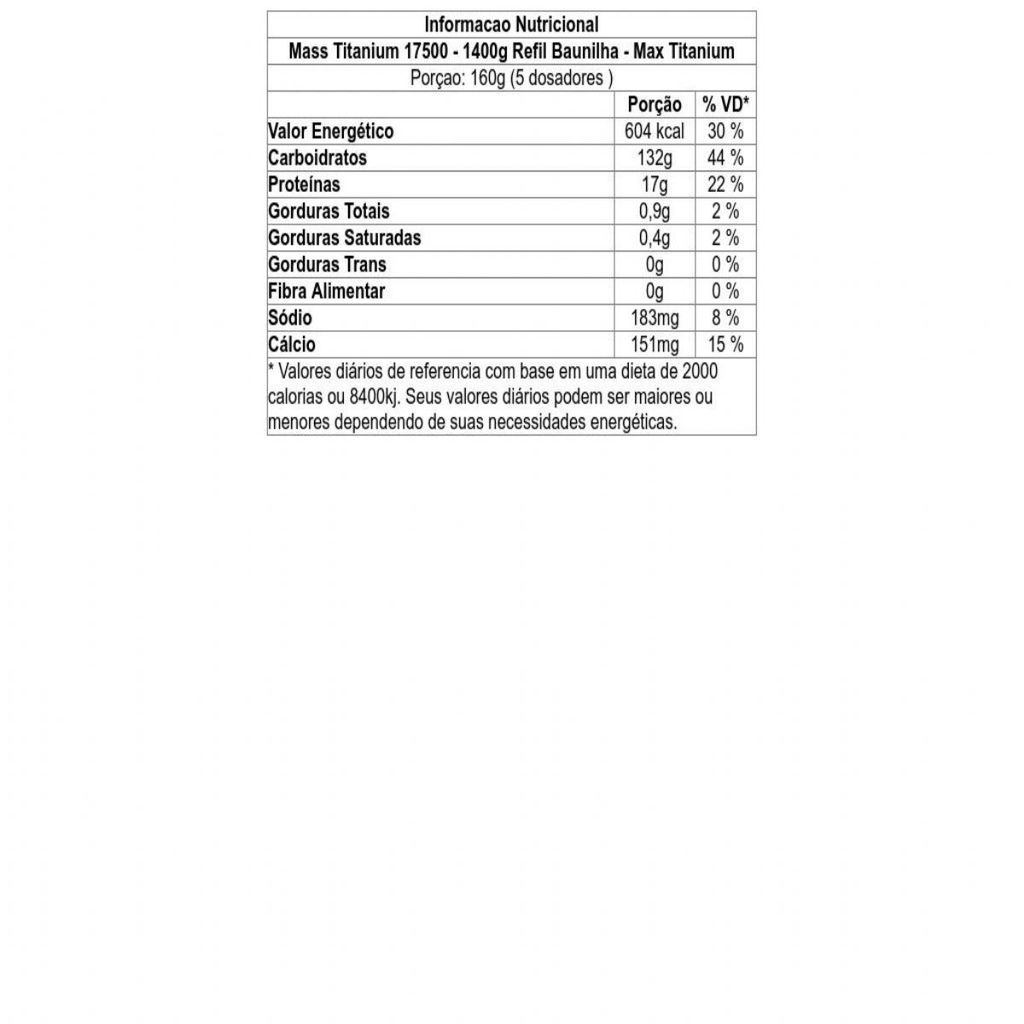 Mass Titanium 17500 - 1400g Refil Baunilha - Max Titanium