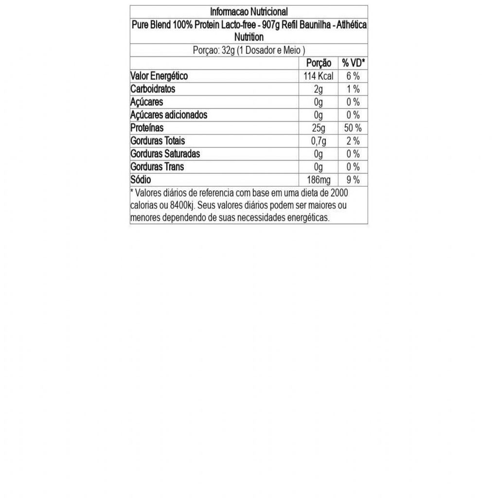 Pure Blend 100% Protein Lacto-free - 907g Refil Baunilha - Atlhética Nutrition