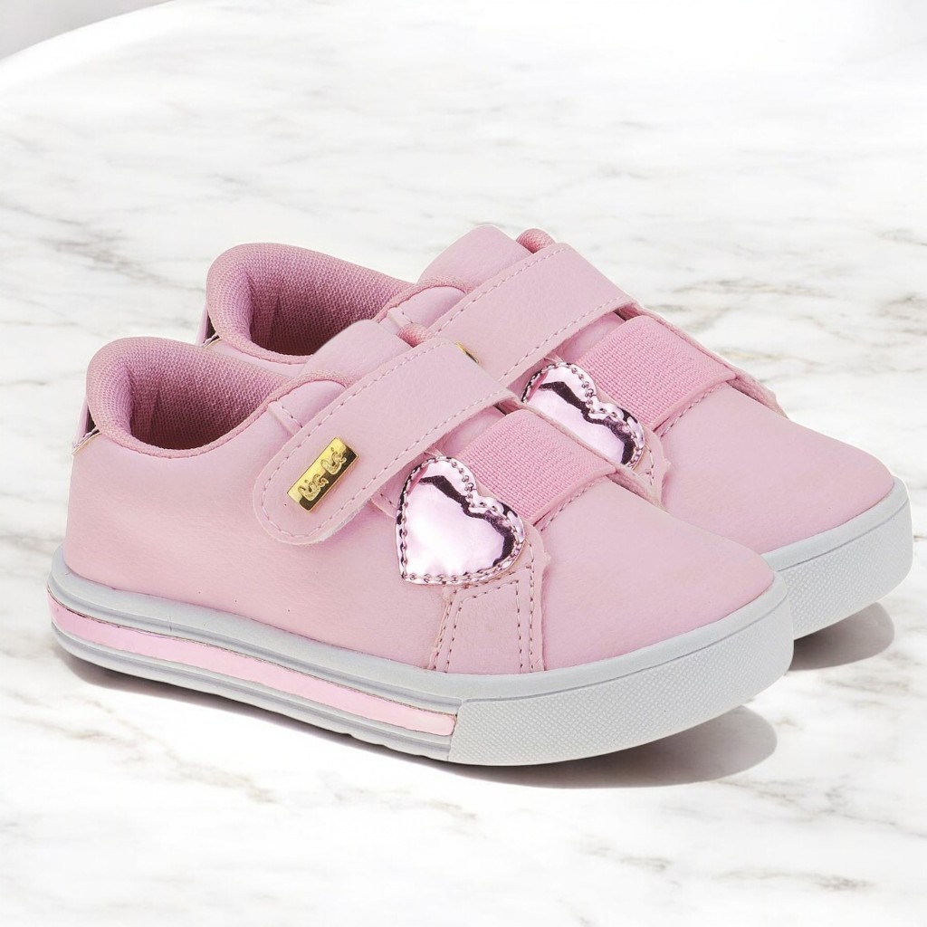 Tênis Infantil Menina Coração Metalizado Casual Confortável Escolar Volta ás Aulas Calce Fácil Moda