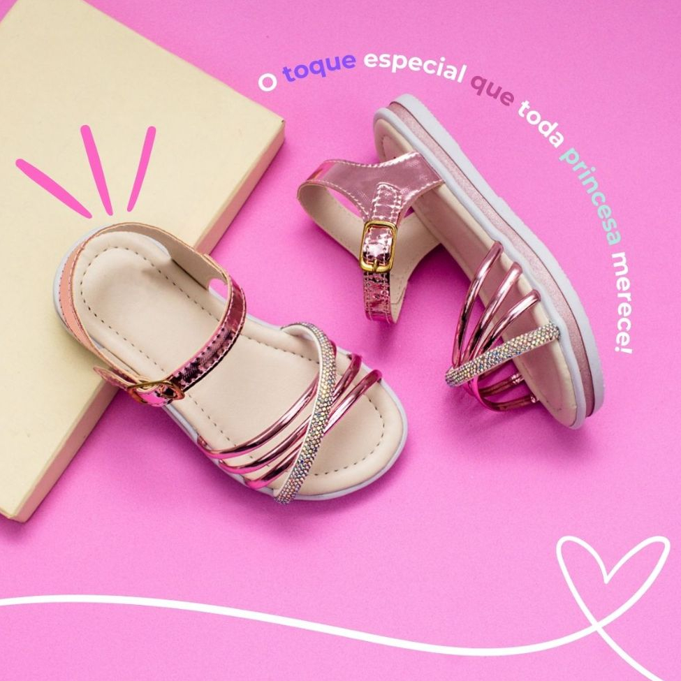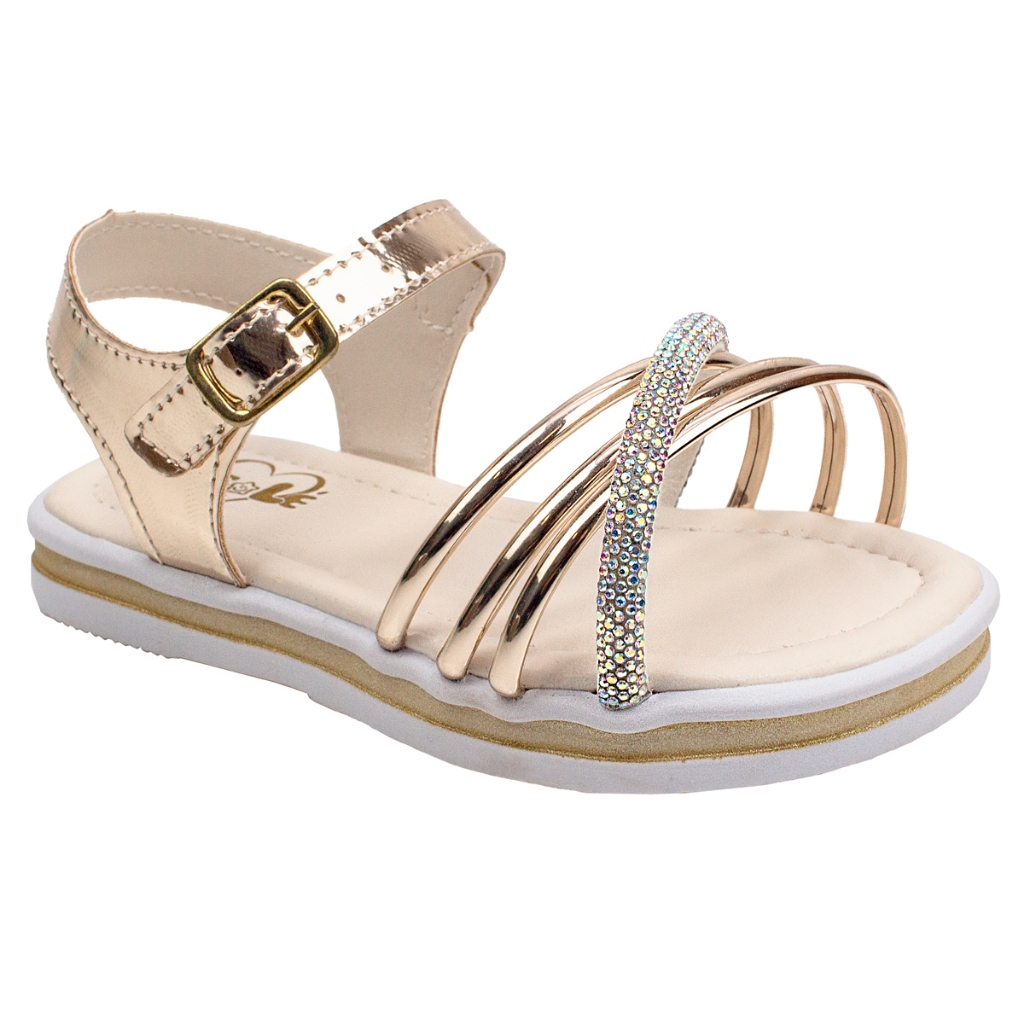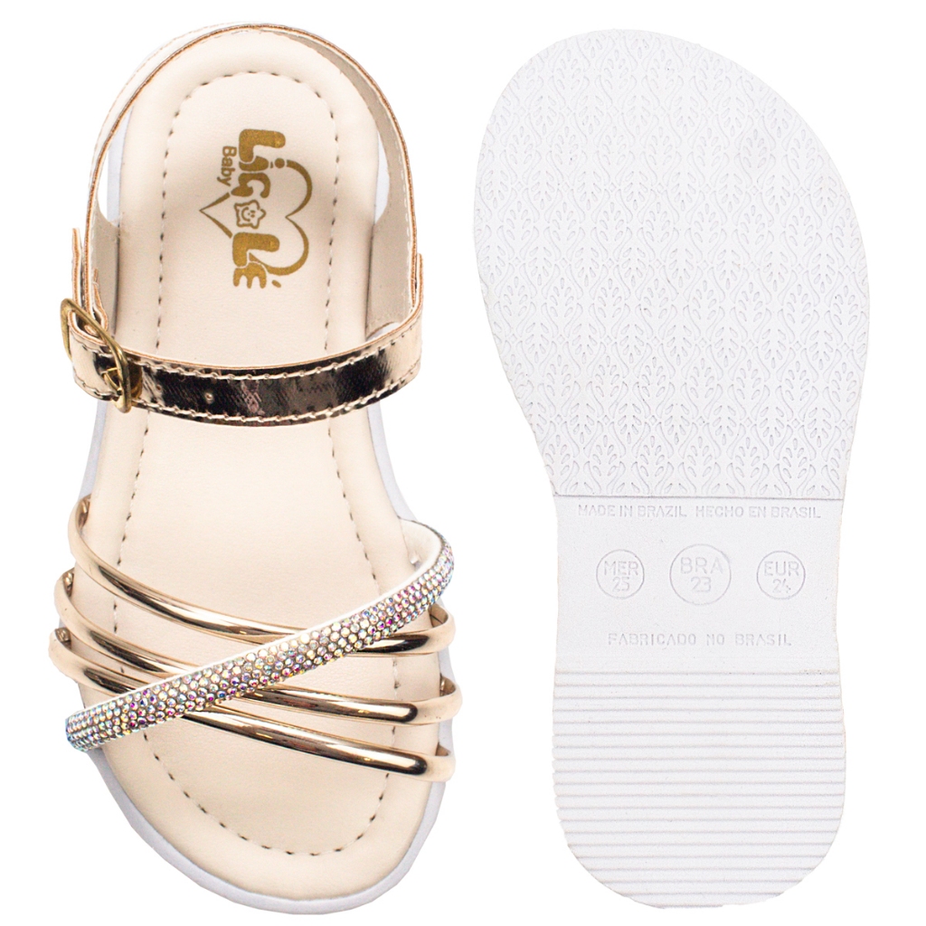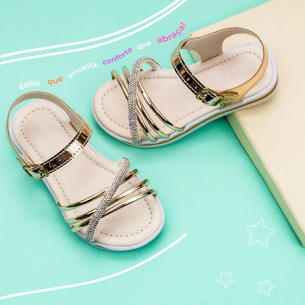 Sandália Infantil Menina Tiras de Brilho Strass Papete Delicada Confortável Fivela Festa Social