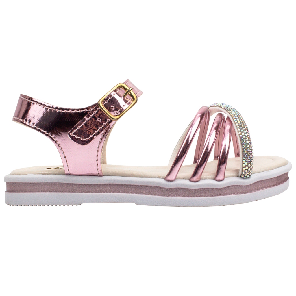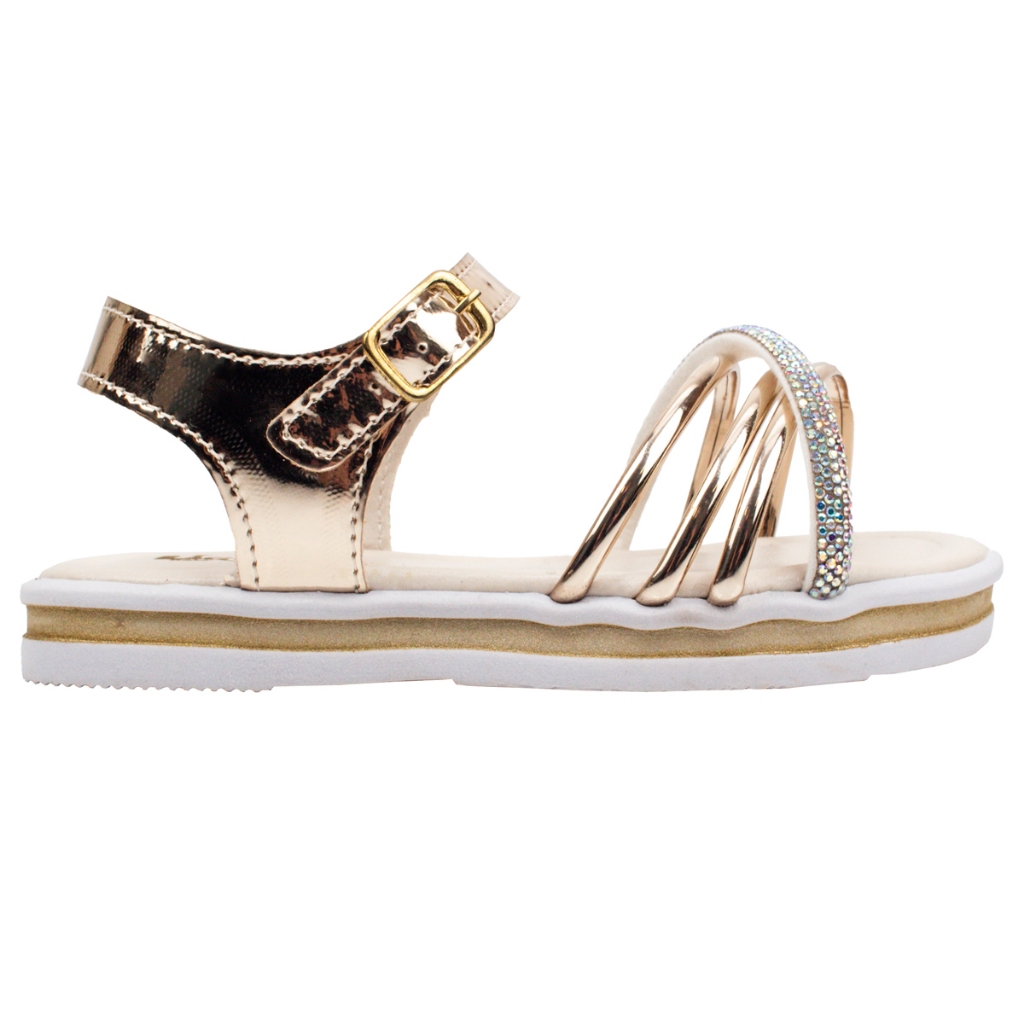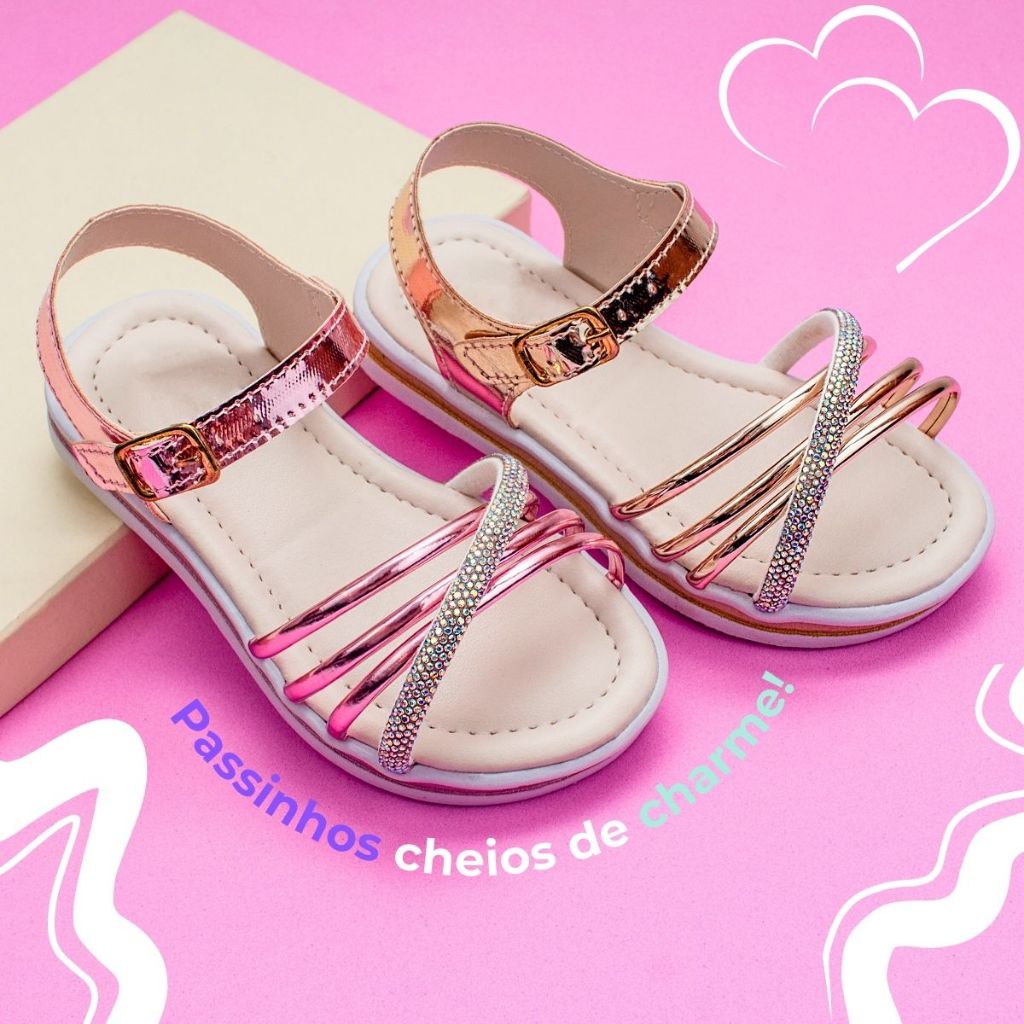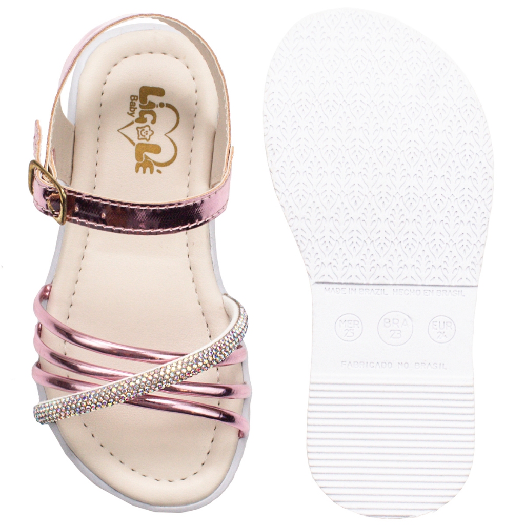 Sandália Infantil Menina Tiras de Brilho Strass Papete Delicada Confortável Fivela Festa Social