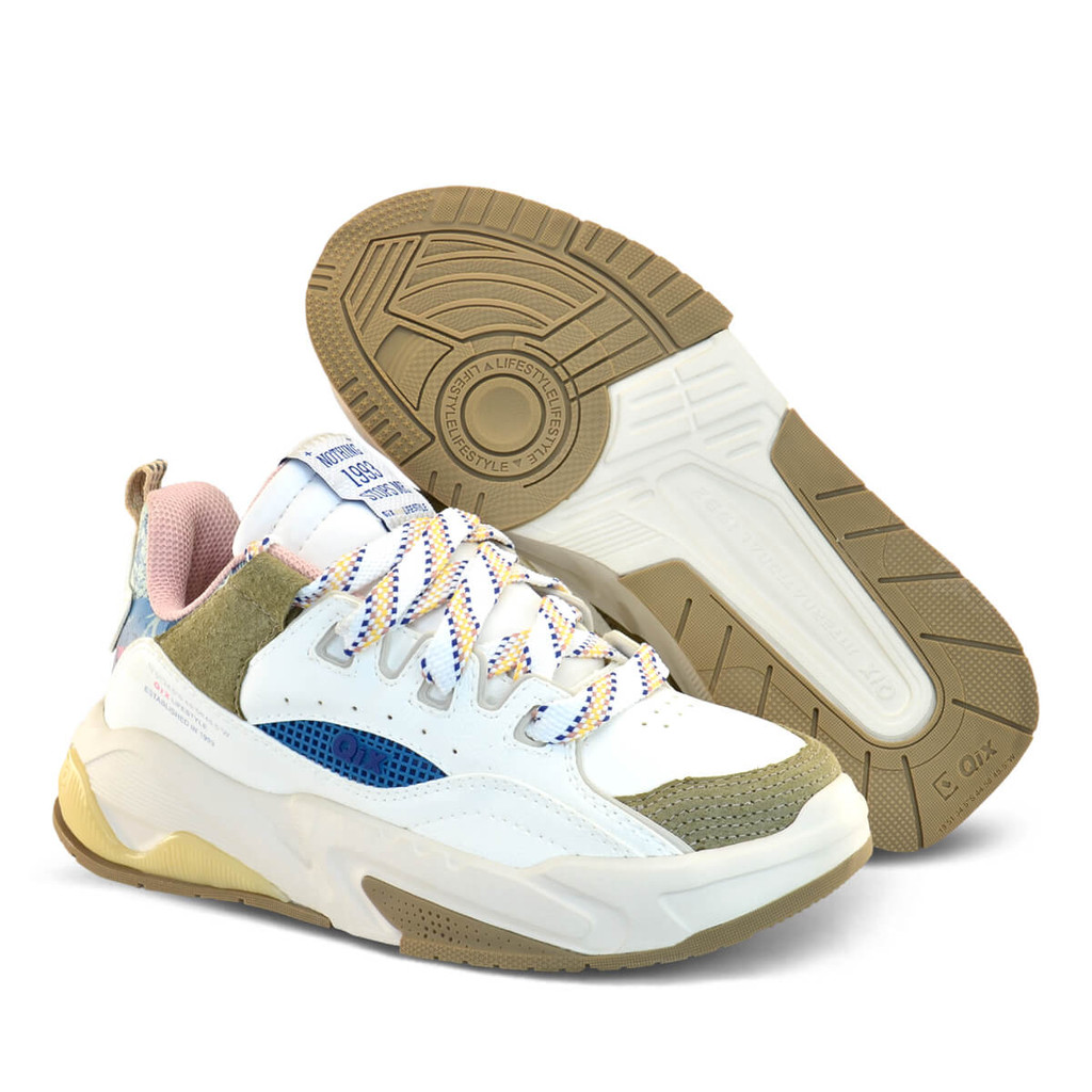 Tênis QIX Missy Feat Urban Macio Bege e Rosê Feminino Confortavel Bonito Casual