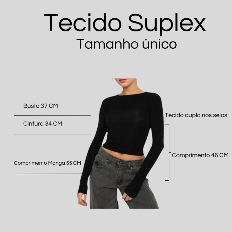 Blusa Manga Longa SUPLEX Baby tee Tshirt Inverno Gola O Forro Duplo
