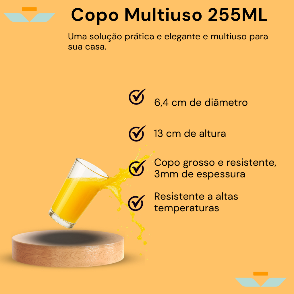 Jogo De Copos De Vidro Long Drink Para Água E Suco 255ml 6 Pcs