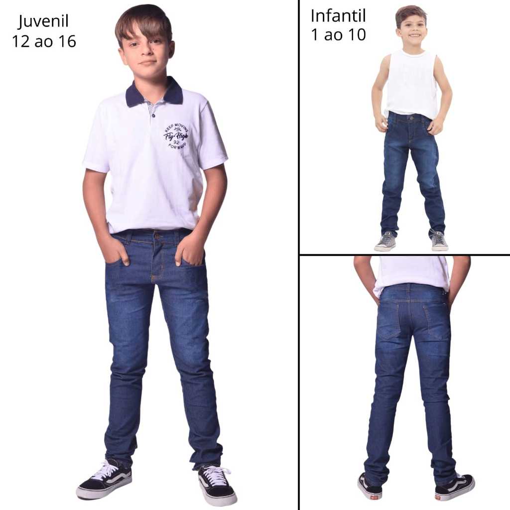 Calça Jeans Infantil Juvenil Masculina Kit 3 Com Lycra Tradicional Meninos Várias Cores Tam 1 ao 16