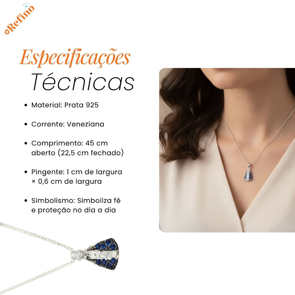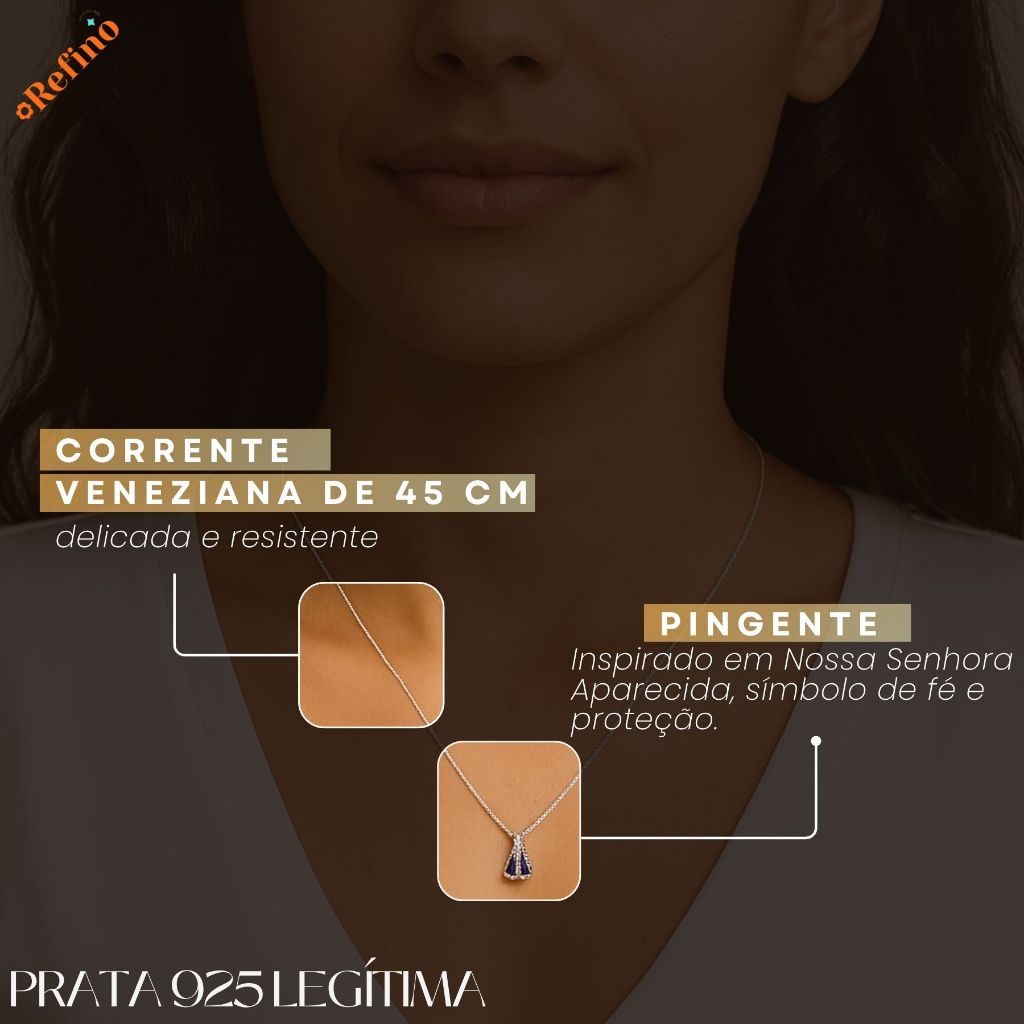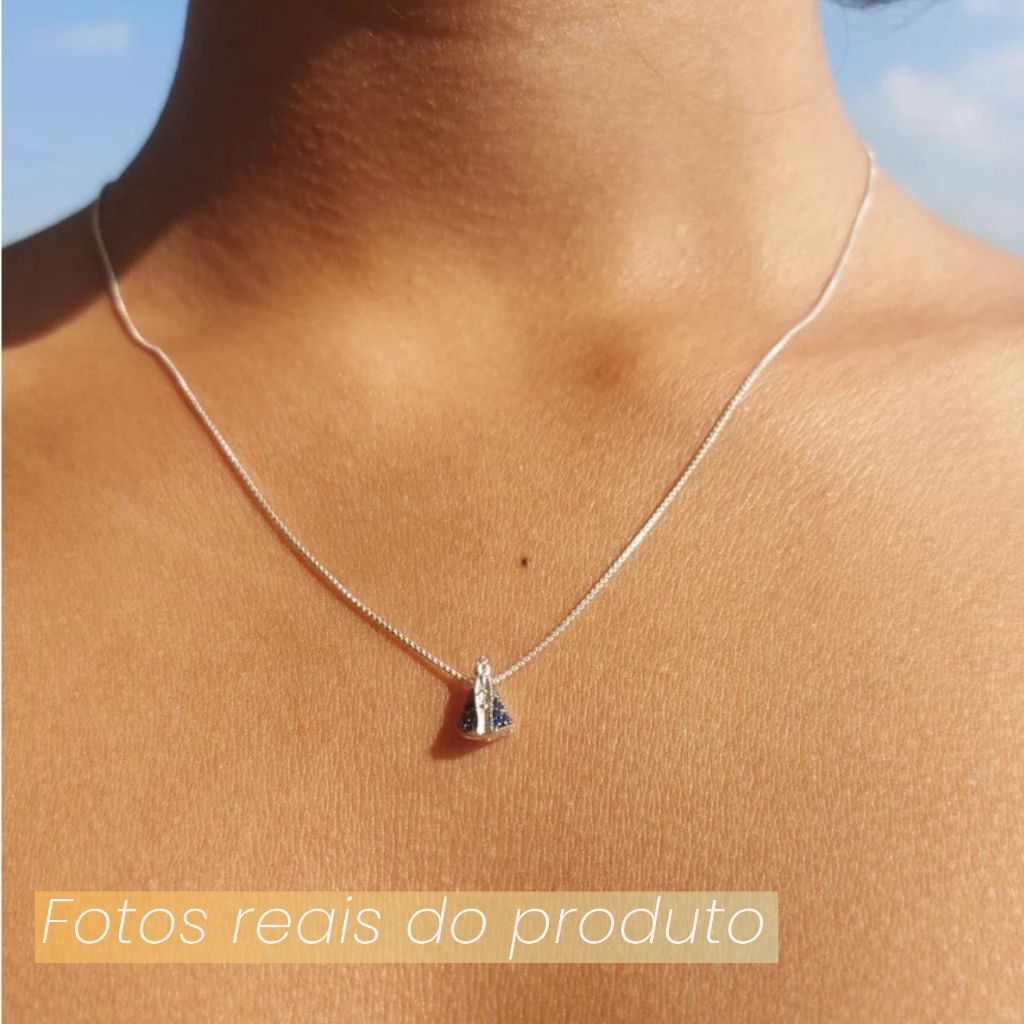 Colar Corrente Santinha Prata 925 Nossa Senhora Aparecida Santa Pingente Legitima Gargantilha