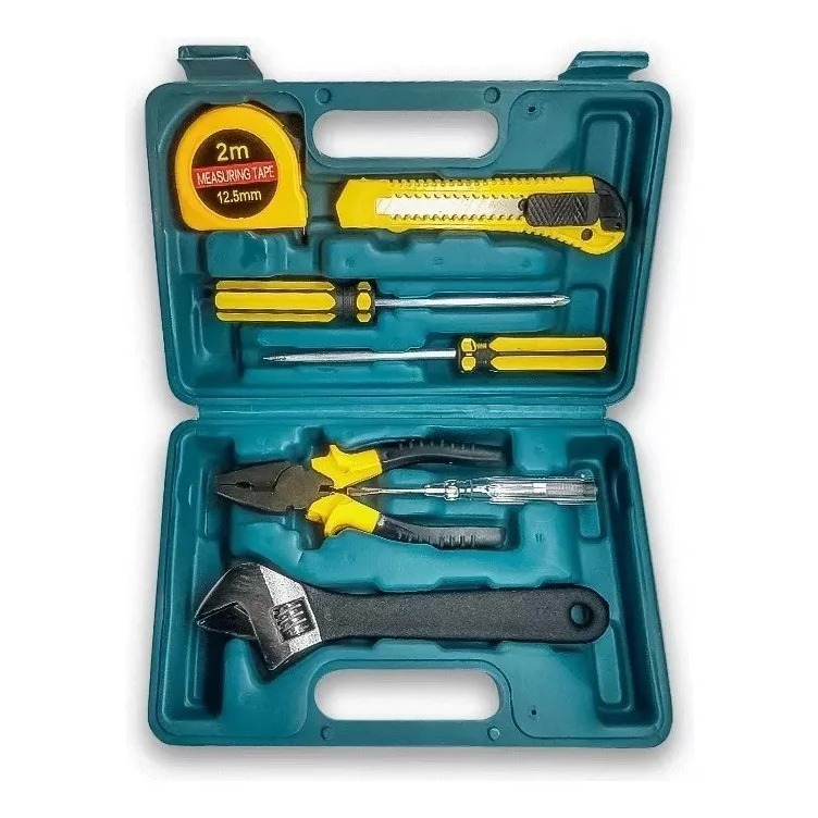 Kit Caixa de Ferramentas 12 em 1 Martelo Testador Eletricidade Trena Chave Fenda Philips Inglesa Alicate