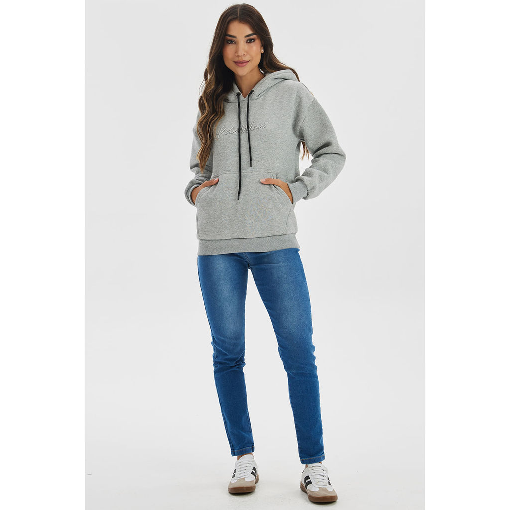 Blusa Feminina Moletom Logo Bordado Polo Wear Mescla Médio